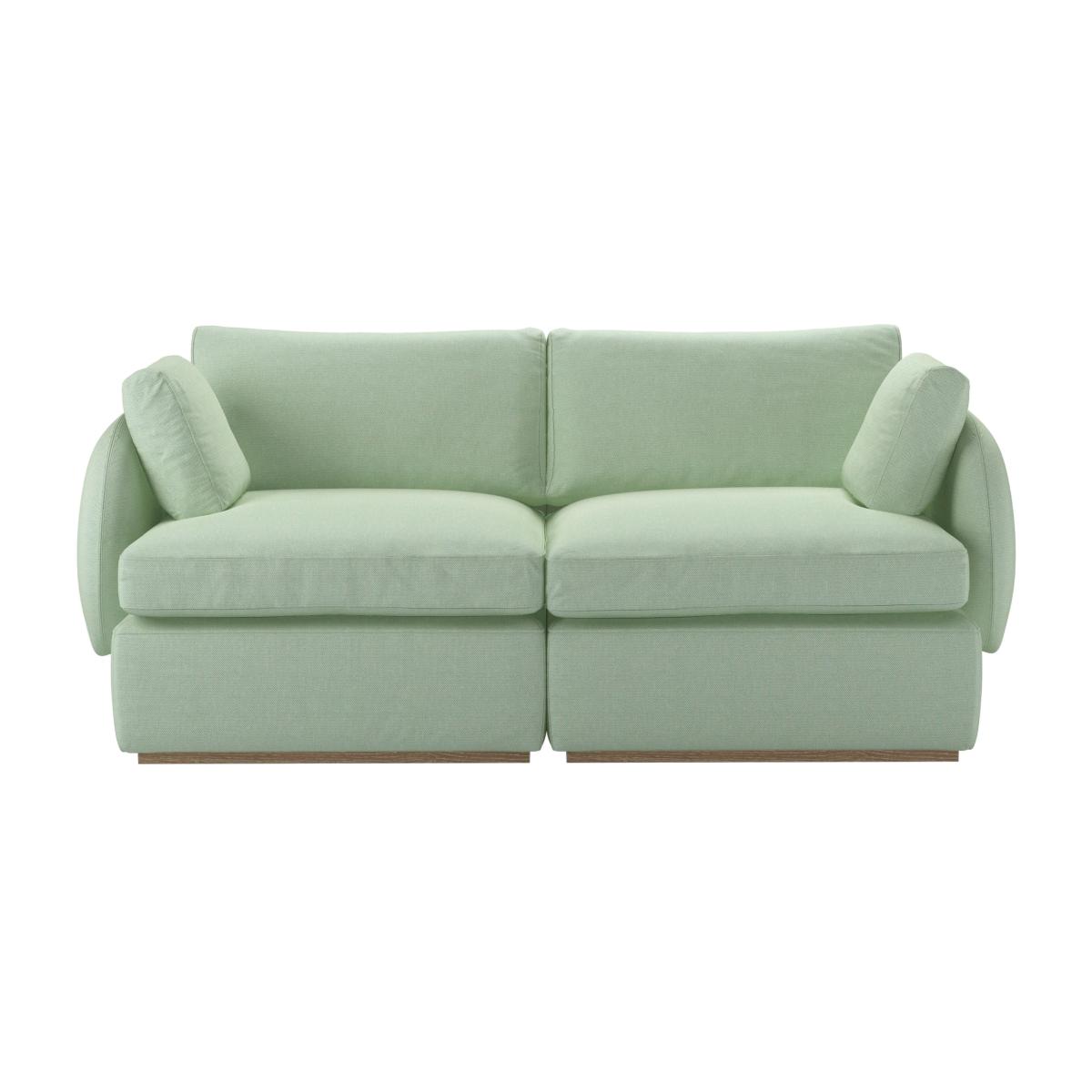 I love this two-seater because it offers a charming, vintage-inspired look with its basket weave fabric and pastel hue, making it a great focal point in both classic and modern interiors. It works particularly well in cosy living rooms, open-plan spaces, or even sunny conservatories. For styling tips, try pairing it with neutral cushions or contrasting patterns to add visual interest, and complement it with layered textures like soft throws or wooden accents to create a balanced, inviting atmosphere. Its compact size makes it versatile, perfect for smaller rooms or as part of a larger seating arrangement.