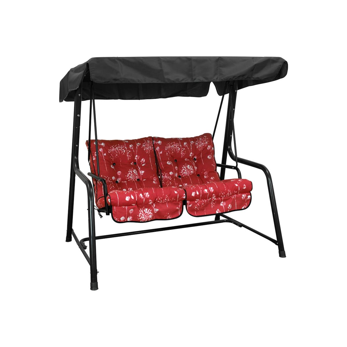 A modern fresh warm design in a red background guaranteed to enhance any garden. 2 Seater hammock with a Steel frame with Crumb filled thick cushion for extra comfort.