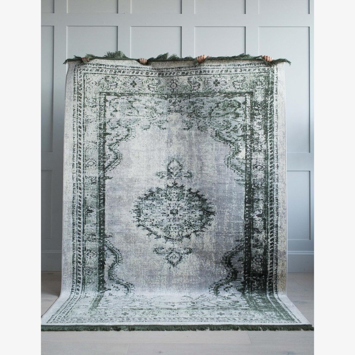I love the vintage-inspired look of this rug, especially in the rich olive green tones that add warmth and depth to any space. It works particularly well in both traditional and contemporary interiors, providing a grounding element that can soften modern furnishings or complement classic pieces with its slightly distressed finish. Practical styling tips include layering it over neutral carpets in living rooms or hallways to create a focal point, or pairing it with natural textures like jute or wood for an earthy, eclectic feel. Because of its versatile colour, it's easy to incorporate into various colour schemes, making it a flexible choice for adding character and cosy charm to a room.