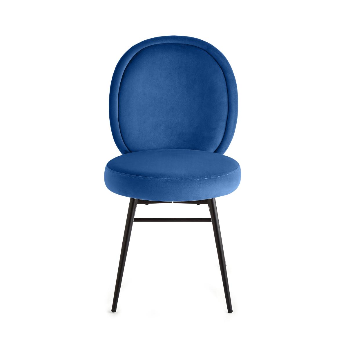 I’m a fan of this blue velvet dining chair for its clean, rounded silhouette and rich colour - it instantly lifts a neutral scheme or complements darker palettes in modern, mid-century or art deco-inspired spaces. The slim black metal legs with brass ferrules add a subtle metallic touch that works well against marble or light timber tables without feeling too heavy. For styling, balance the bold hue with soft greys or muted greens on walls and accessories, and introduce a mix of textures - linen napkins, a woollen runner - to keep the look layered. To maintain the velvet’s finish, vacuum regularly with a soft brush attachment and treat spills immediately with a damp cloth, avoiding harsh chemicals.
