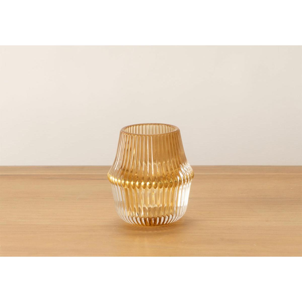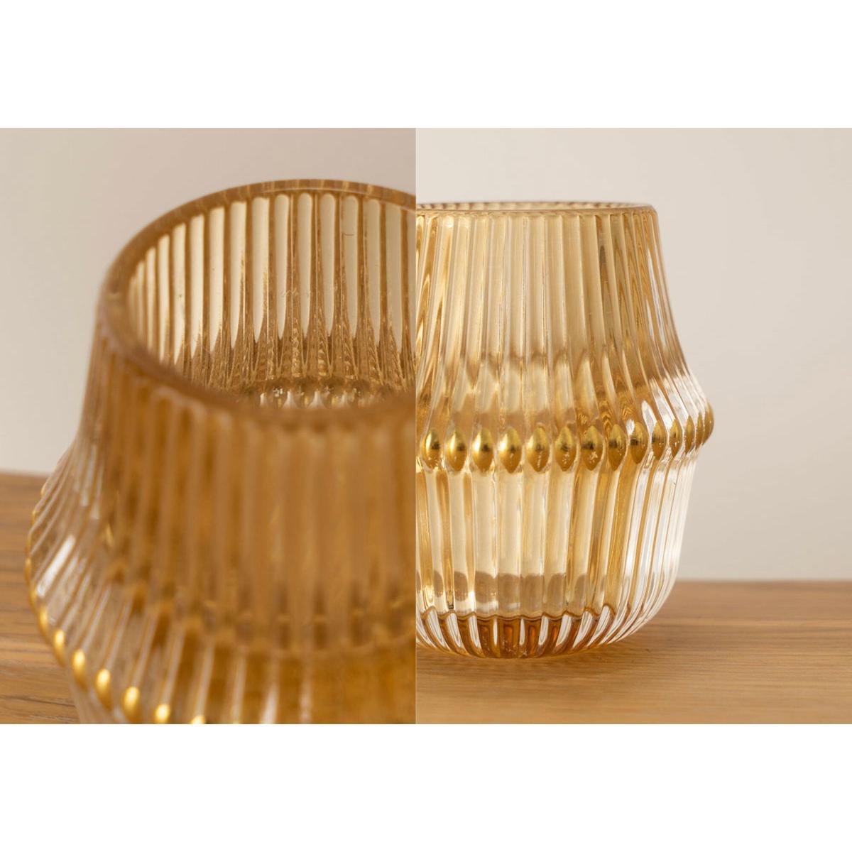 Made of solid Gold toned Glass with ridged outside detailing and a Gold accented centre, the Renata array of tealight holders are true retro chic, making even the most subtle accent in your space stunning. The patterns and shadows cast around your home will be mesmerising.