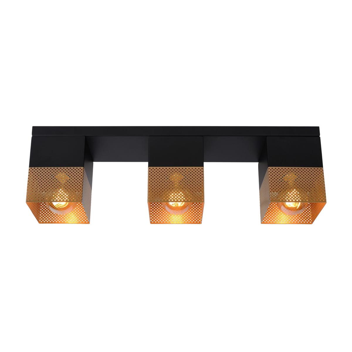 Renate Triple Modern Flush Ceiling Light Matt Gold Brass - Black