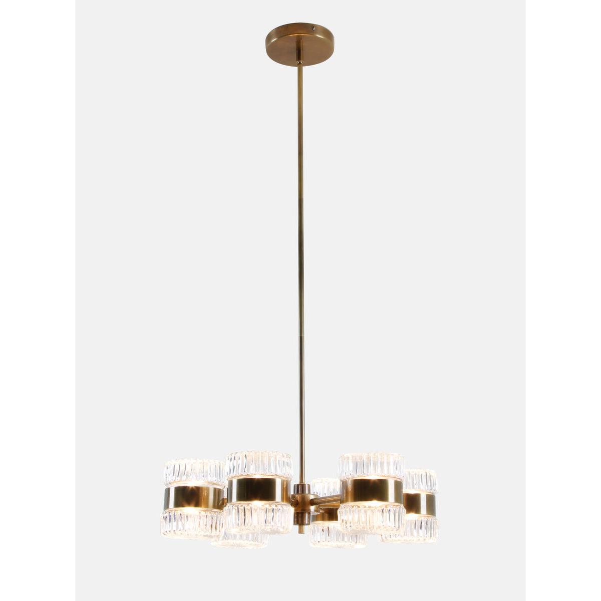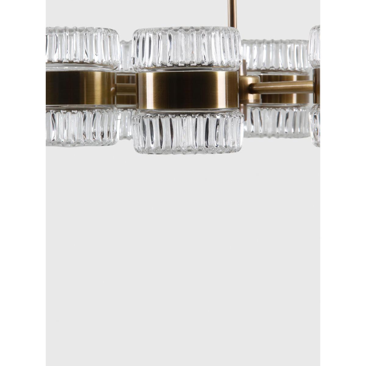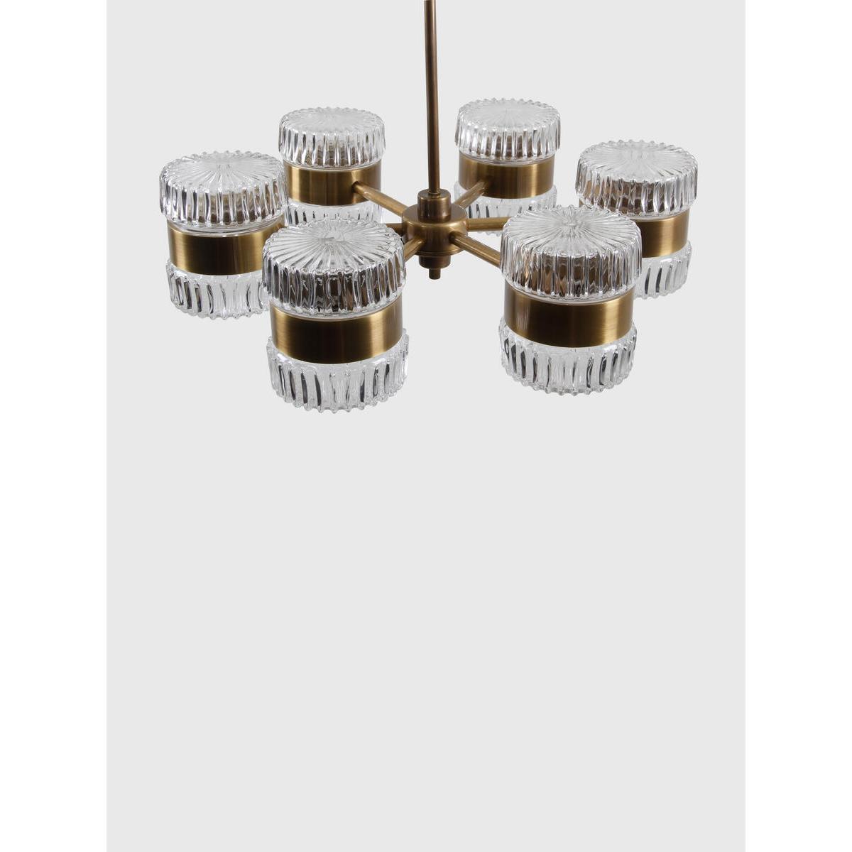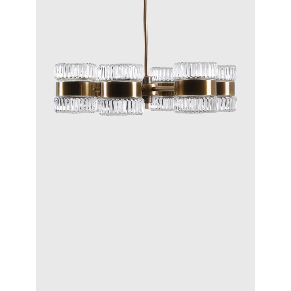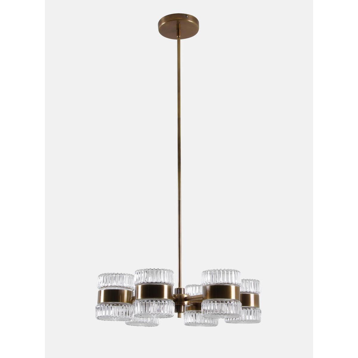 Influenced by the restrained glamour of Gatsby-era American interiors, Renato will make an impact in any space. Six arms in antique brass radiate from a central fixed spine, with faceted glass cylinders casting distinctive light patterns. Look for similar chandeliers in our North American Houses, particularly Brooklyn's DUMBO House. Cut-glass chandelier Steel frame with antique brass finish Requires 6 x 25W G9 bulbs Inspired by DUMBO House