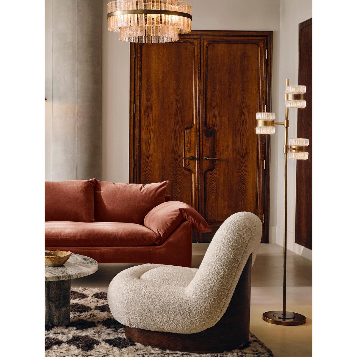 The penser floor lamp is a sleek and modern choice that works particularly well in contemporary or minimalist interiors. I love its elegant brass finish which adds a touch of sophistication, making it a versatile piece for living rooms, bedrooms, or even a chic home office. Practical styling tips include pairing it with neutral-toned furniture to let its metallic details stand out, or using it as a statement piece in a corner to create both ambient and task lighting. Its layered glass accents add texture without overwhelming, making it a functional yet stylish addition to various interior styles.