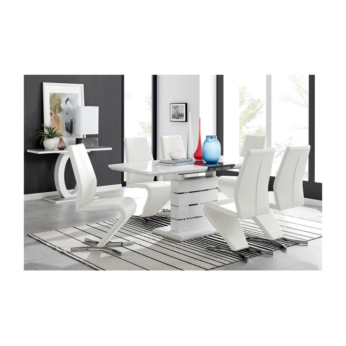 The elegant High Gloss and Chrome Renato Table features an eye-catching stacked base design for the interior connoisseur, you would be forgiven for thinking this table was a sculpture! With the practical addition of extending effortlessly from 140cms to 180cms (L) to seat 8 and with a family-friendly wipe-clean surface, you'll be hard-pressed to find a more stylish and adaptable dining table. When extended, the middle section adds a contrasting panel in dark grey offering a completely new look two tables in one! A handsome addition to any modern home. The Willow is a premium modern chair that ticks all the boxes. They are comfortable, look incredible and don't cost a bomb. These eye-catching chairs are fully padded throughout and have an ergonomically designed back support to maximise comfort. They also feature half-moon chromed feet, which give these chairs a sturdy base. The curved design gives the Willow chair a contemporary elegance that would complement any modern dining area.