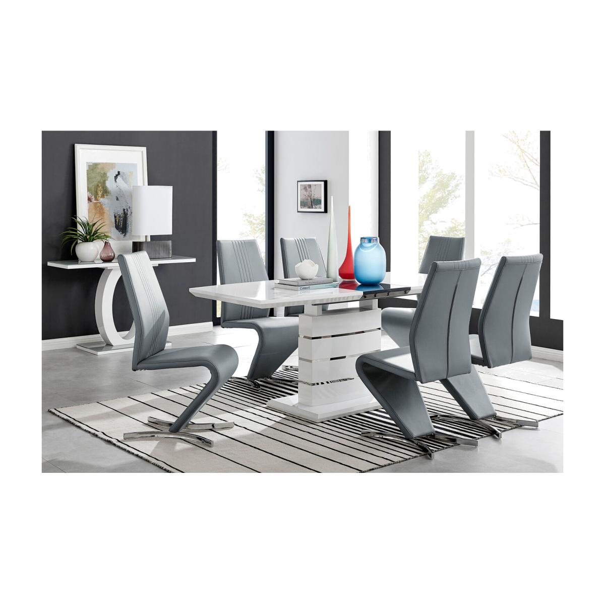 The elegant High Gloss and Chrome Renato Table features an eye-catching stacked base design for the interior connoisseur, you would be forgiven for thinking this table was a sculpture! With the practical addition of extending effortlessly from 140cms to 180cms (L) to seat 8 and with a family-friendly wipe-clean surface, you'll be hard-pressed to find a more stylish and adaptable dining table. When extended, the middle section adds a contrasting panel in dark grey offering a completely new look two tables in one! A handsome addition to any modern home. The Willow is a premium modern chair that ticks all the boxes. They are comfortable, look incredible and don't cost a bomb. These eye-catching chairs are fully padded throughout and have an ergonomically designed back support to maximise comfort. They also feature half-moon chromed feet, which give these chairs a sturdy base. The curved design gives the Willow chair a contemporary elegance that would complement any modern dining area.