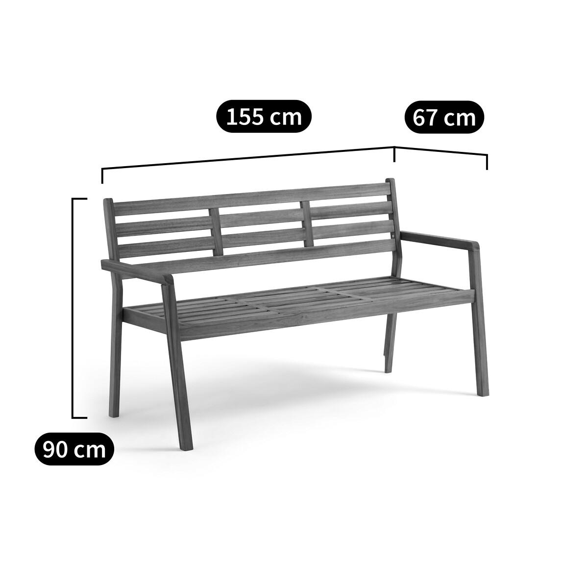 Robust and functional, the Rency 3-seater garden bench in pre-oiled acacia offers a simple design and generous dimensions that allow it to accommodate up to 3 people.. It combines style and practicality. Product Details • In acacia, tinted oiled finish, natural colour. FSC® certified wood • Seat and back in perforated slats, thickness 5.7cm • Can fit 3 people • 2 fixed armrests. Quality Info • Acacia is a wood that offers good mechanical properties (good resistance to insects and fungi) and is resistant to bad weather (alternation of dry and humid periods).Dimensions • Width: 155cm • Height: 90cm • Depth: 67cm • Seat height: 46.5cm • Armrest height: 66.6cm. Quality Info Acacia is a wood with impressive properties. It is highly durable (highly resistant to insects and fungus) and weather-resistant (withstands periods of dry and wet weather).Delivery:Your product is sold ready to assemble. It will be delivered to your door. Note! Please check that all access points are large enough to accommodate your delivery (doors, stairs, lifts). • WOOD FROM SUSTAINABLY MANAGED FORESTS. FSC® certified wood comes from forests that are environmentally, socially and economically well managed. Dimensions and weight of parcel1 parcel • L154 x H16.5 x 94cm. 17.5kg.