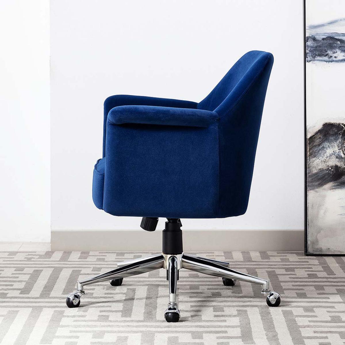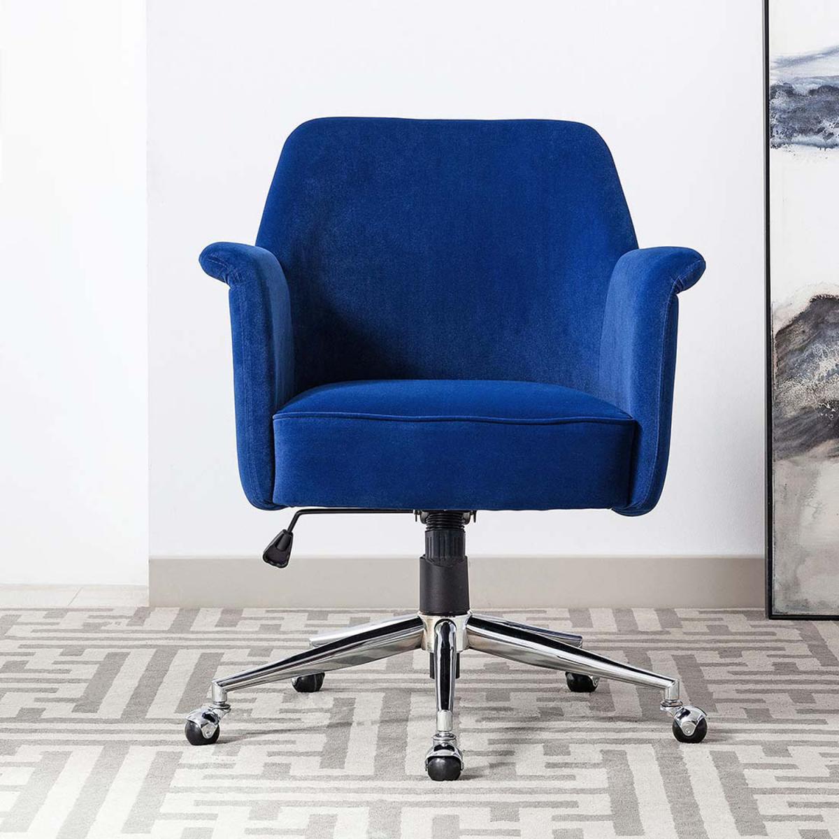Rene Velvet Swivel Home Office Computer Chair - Blue