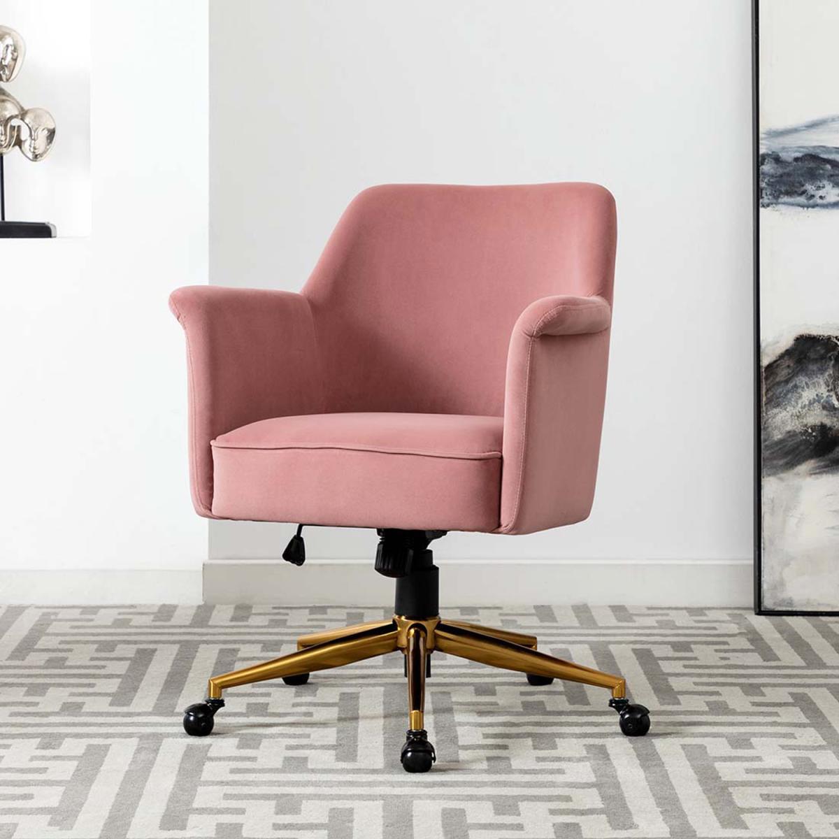 Rene Velvet Swivel Home Office Computer Chair - Pink