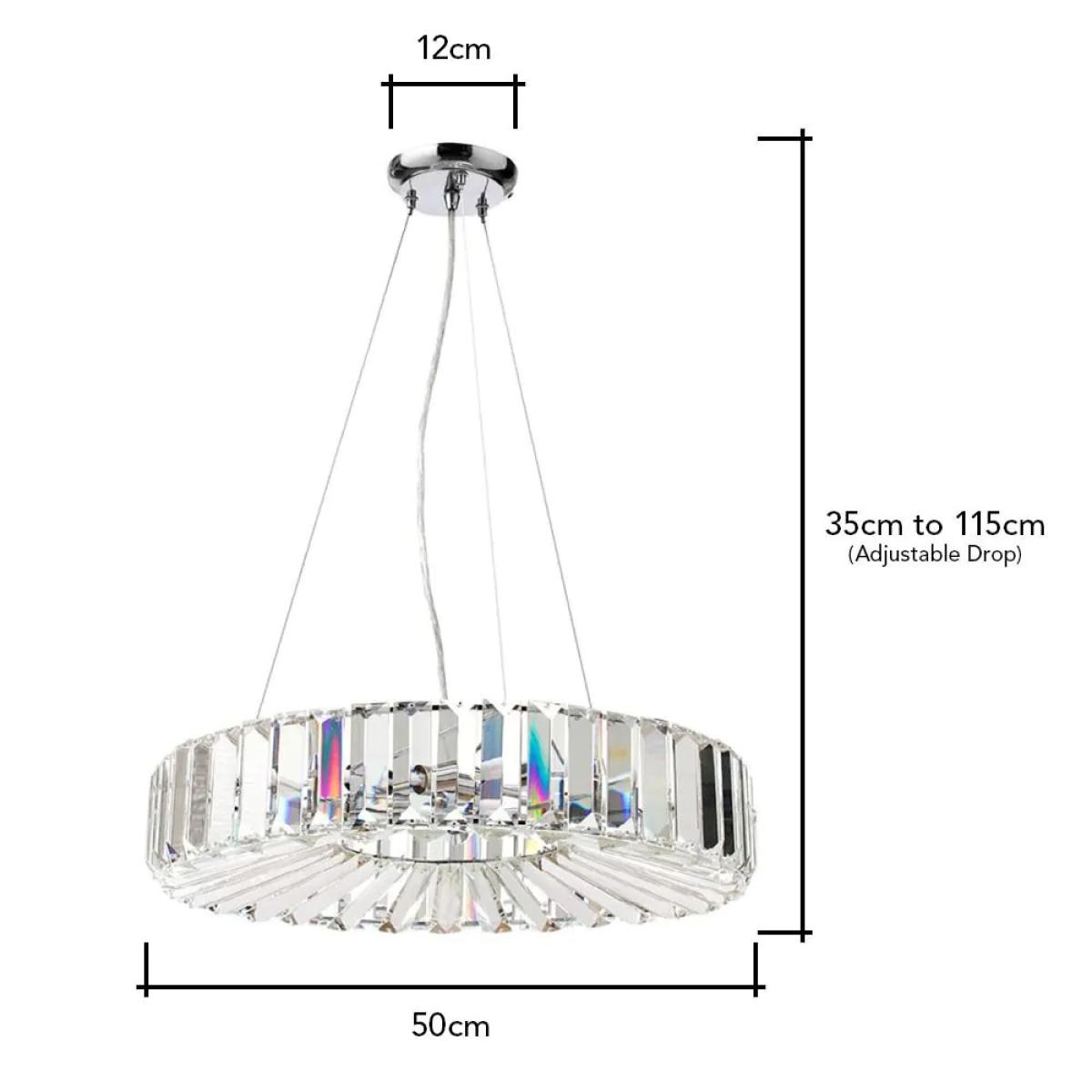 The Renee Crystal Pendant in chrome is a striking choice that adds a modern touch with its sleek, reflective finish and faceted crystal detailing. I love how it effortlessly elevates contemporary and minimalist interiors, while also working well in more luxe, glamour-inspired spaces. For styling, consider hanging it above dining tables or in entryways to create a focal point. To maximise its impact, pair it with neutral wall colours and simple furnishings, allowing the pendant to shine without competing with other patterned or colourful elements. Practical tip: ensure the height is adjustable to suit different ceiling heights and room types, making it a versatile addition to various spaces.