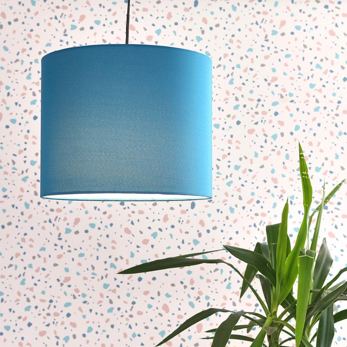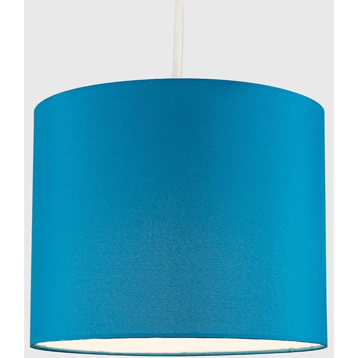 Modern cylinder drum shaped light shade in a french blue polycotton finish. This fantastic shade can double up as either a ceiling pendant light shade or table lampshade! Easily fits to your standard ceiling light socket - no wiring necessary! Various colour options and other sizes available.
