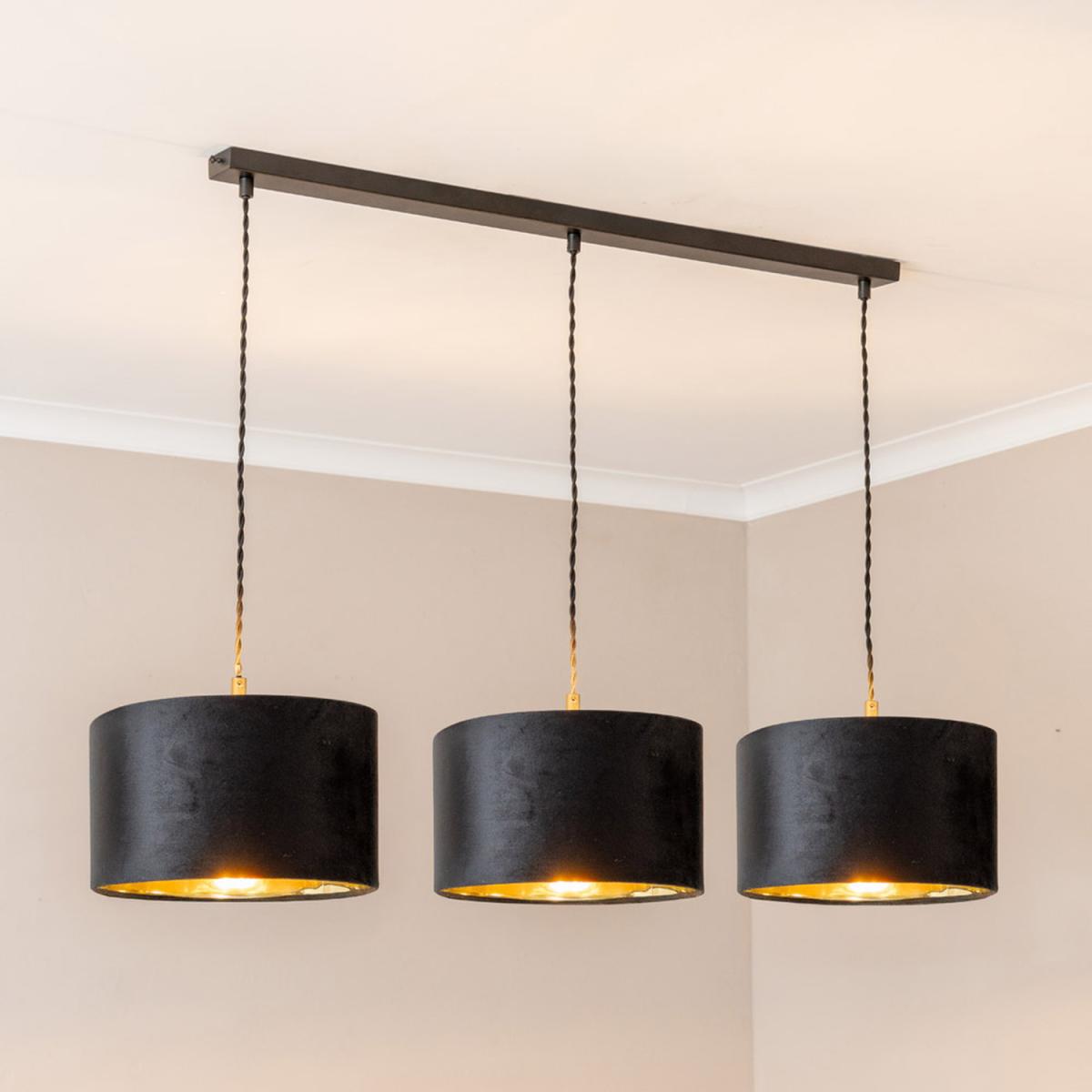 Reni Velvet Shade 3 Drop Bar Pendant Ceiling Light with LED Bulbs - Black