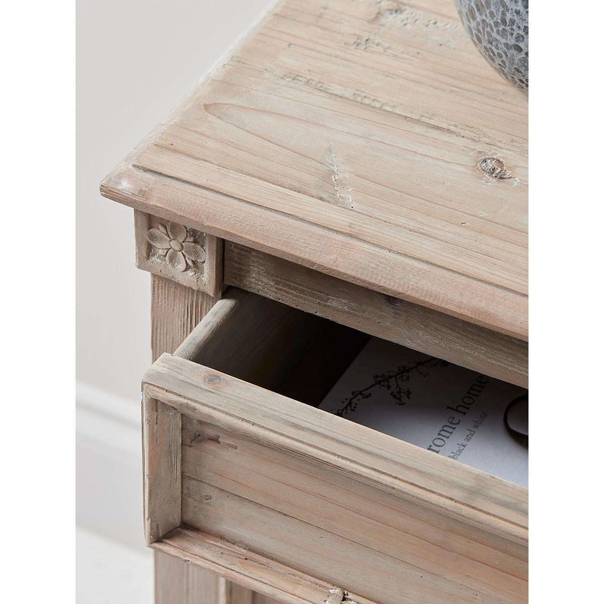 I love how this Rennes chest, with its bleached-wood finish and subtle moulded detail, brings a relaxed yet refined look to a room. The turned legs and gently weathered surface work equally well in coastal, Scandinavian or modern farmhouse interiors, adding texture without feeling overly ornate. For styling, keep the top neat with a small cluster of glass or ceramic vases in varying heights, then centre a round mirror or woven wall piece above for balance. The six drawers are ideal for stashing everyday clutter - consider it as a hallway console, a bedroom storage unit or even a sideboard in a dining area.