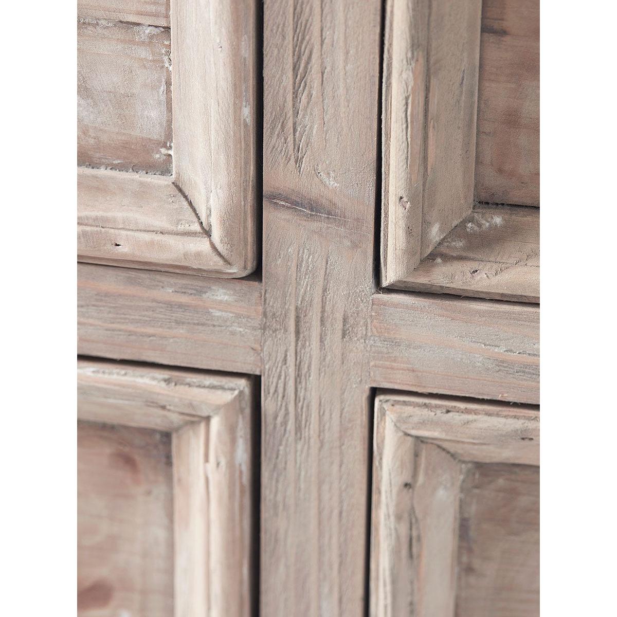 A beautiful chest of drawers - full of character that will blend effortlessly into period properties or add personality to more contemporary homes. In a pale reclaimed wood, the chest features subtle floral carving to the corners, tall turned legs and six drawers with attractive moulding and aged metal ring pull handles.