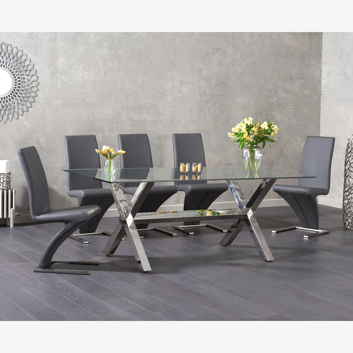Renzo 200cm Glass Dining Table With 8 Ivory White Hampstead Z Chairs