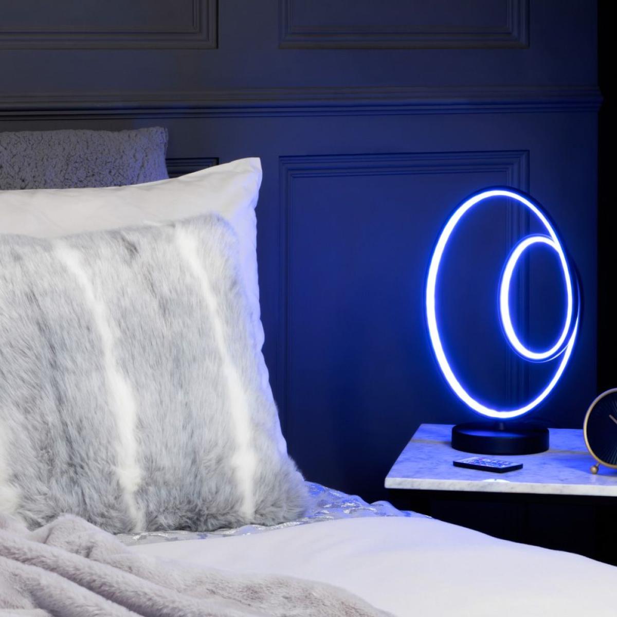 Add a stylish and urban look to your interior with the Renzo Colour Changing LED Table Lamp, ideal in any bedroom or living room. This table lamp features a gorgeous swirling design and has a satin black finish for a contemporary appearance. The Renzo also features innovative colour changing technology, with 16 options to choose from so you can customise it to suit you.