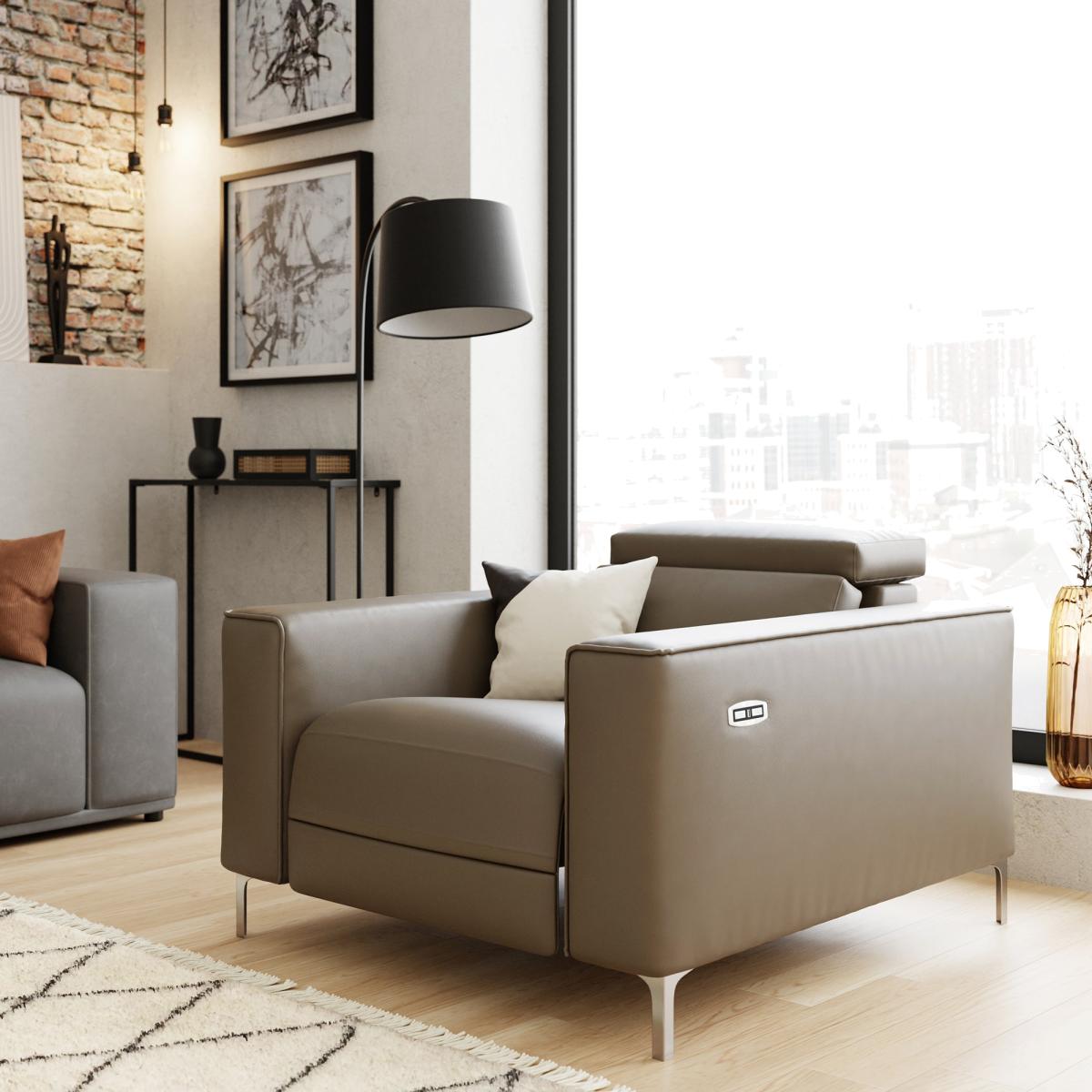 Renzo Iva Faux Leather Electric Recliner Armchair Faux Leather Mocha