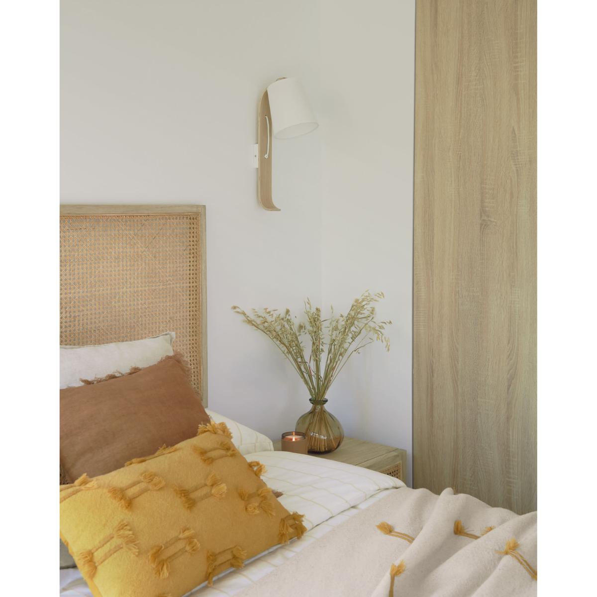 I love this wall light’s clean, modern aesthetic combined with the warm touch of the oak veneer, making it a versatile piece for many interior styles. It works particularly well in Scandinavian-inspired spaces or contemporary interiors where natural materials complement minimalist decor. For styling tips, consider placing it beside beds or in living areas where its subtle yet functional lighting can create a cosy atmosphere. Pair it with neutral tones or soft textiles to highlight its understated elegance, and avoid overcrowding the surrounding area to allow its simple silhouette to stand out. It’s a practical choice that adds warmth and texture without overwhelming the space.