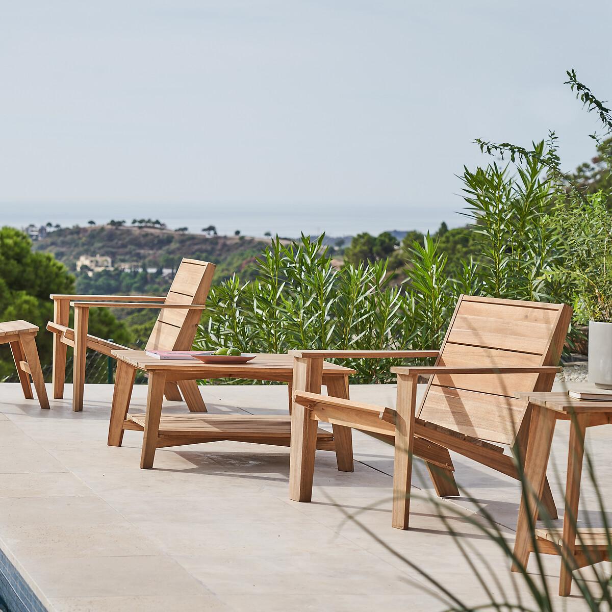 Wide backrest, inclined seat and wide armrests... the legendary Réphir Adirondack chair has been revised with a lower seat position. A decidedly modern look for this wooden armchair. Product Details • Solid FSC® acacia, oiled finish for the raw version and stained stain finish for the other colours • Inclined seat. Dimensions • Width: 74cm • Height: 70cm • Depth: 71cm • Weight: 10.5kgDelivery:. This product is sold ready to assemble, instructions attached. Available for home delivery. Note! Please check that all access points are large enough to accommodate your delivery (doors, stairs, lifts). • WOOD FROM SUSTAINABLY MANAGED FORESTS. FSC® certified wood comes from forests that are environmentally, socially and economically well managed. Dimensions and weight of parcel • 1 parcel • L86 x H64.5 x D23.5cm. 15kg