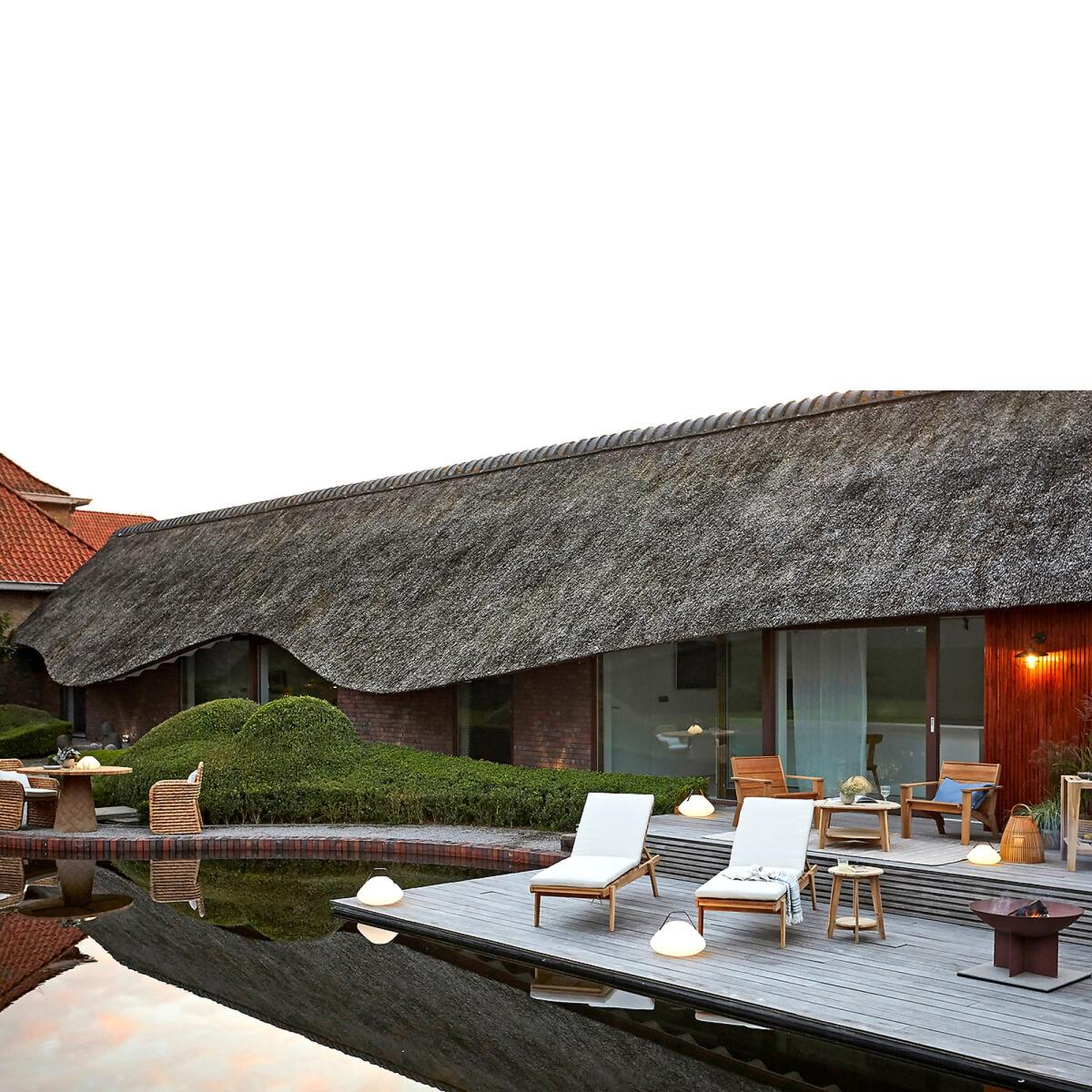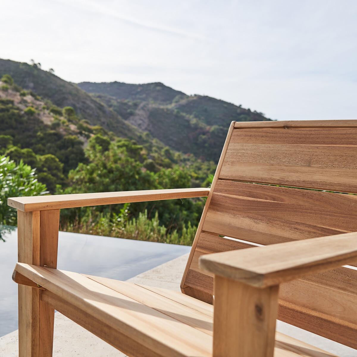 Wide backrest, inclined seat and wide armrests... the legendary Réphir Adirondack chair has been revised with a lower seat position. A decidedly modern look for this wooden armchair.