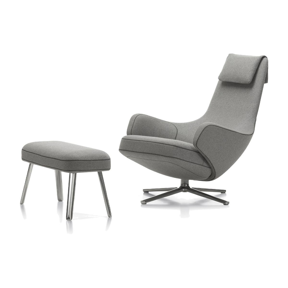 Designed in 2012 by Antonio Citterio, the Repos Chair and Panchina Set available in a variety of upholstery options is manufactured by Vitra and offers the ultimate in seating comfort. With generous padding, inviting armrests and a high back, the Repos Chair fulfils almost all demands with respect to comfortable, relaxing seating. Featuring biomechanical adjustment options, the chair adjusts to the sitter’s position and weight to offer exceptional support and can be locked in any desired position. Developed in Switzerland by Vitra in collaboration with Italian designer and architect, Antonio Citterio in 2012, the Repos combines timeless elegance with unsurpassed comfort. After years of experience creating dynamic seating for home and workspace, Citterio applies his expertise to the private living area to award the space with comfort and sculptural design. Available upholstered in Vitra’s premium leather in a chocolate hue, or in Cosy fabric in a beautiful pebble grey, the stitched cover offers a classic and inviting finish, while the selection of available hues allow the iconic pieces to harmonize with an array of interiors.