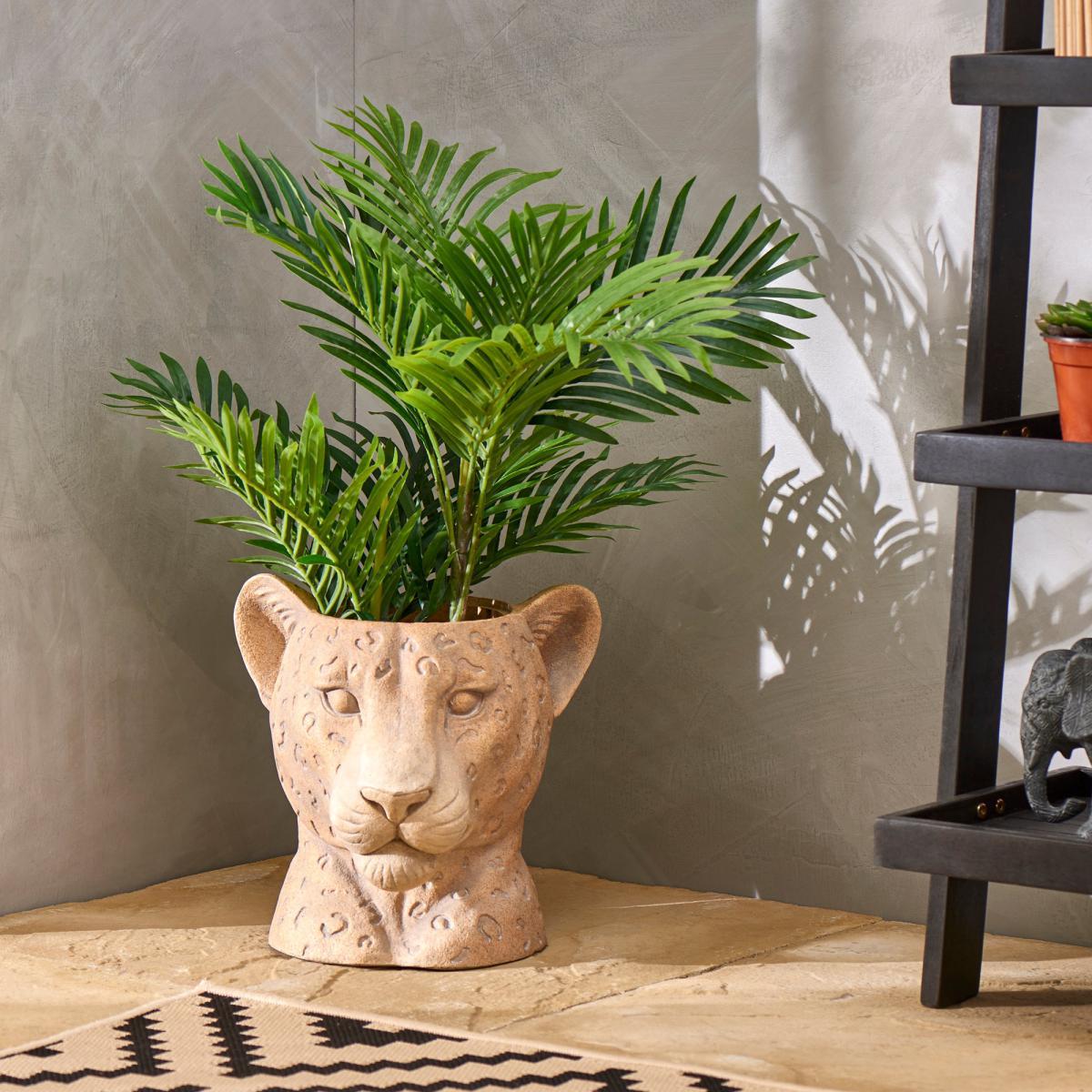 I love this leopard head planter for adding a touch of character and texture to a variety of interiors. It works particularly well in eclectic, bohemian, or contemporary spaces where it can serve as a statement piece. The brown resin finish makes it versatile enough to pair with both earthy tones and more vibrant colour schemes. Practical styling tips include using it as a centrepiece on a side table or shelf, combining it with lush greenery for a lively display, or mixing it with other animal-themed accessories for a curated look. It’s a fun yet sophisticated piece that brings a bit of personality to any room.