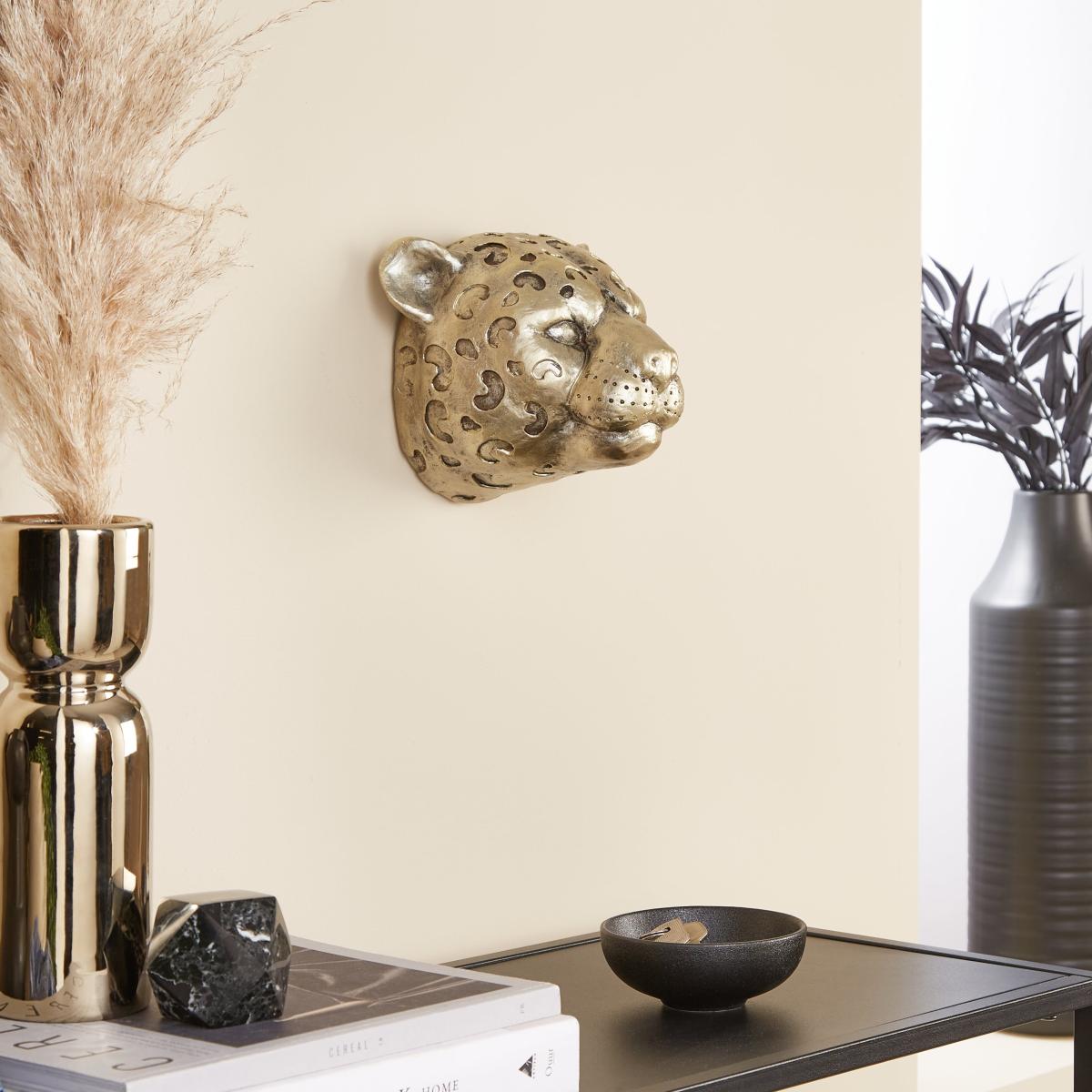 This stunning Resin Leopard Wall Head is perfect for making a statement in an entrance hallway or living room. Beautifully made from durable polyresin material and carefully hand painted with a gold finish.