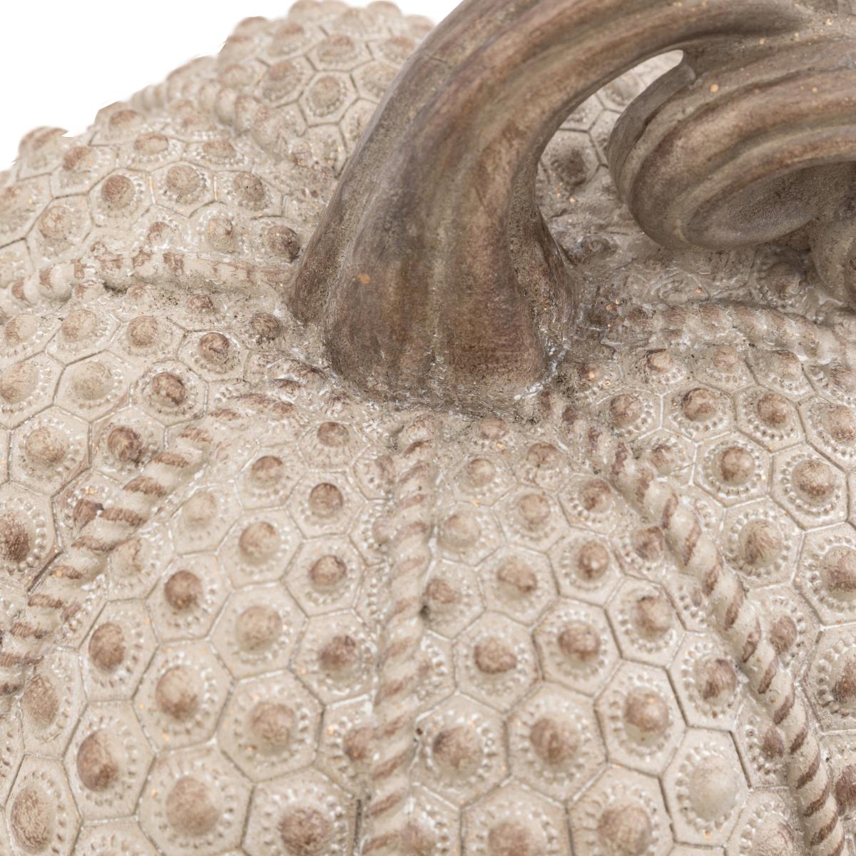 I really like this pumpkin for adding texture and a natural touch to various interiors. Its neutral tones and unique form make it quite versatile; it works particularly well in rustic, Scandinavian, or eclectic settings. The resin material ensures durability, so it’s easy to incorporate into shelves, coffee tables, or even as a centrepiece on a dining table. For styling tips, try pairing it with earthy ceramics or organic fabrics to create a cohesive look, or group it with other seasonal or textured objects to enhance visual interest. It’s a simple, contemporary piece that can elevate a space without overwhelming it.