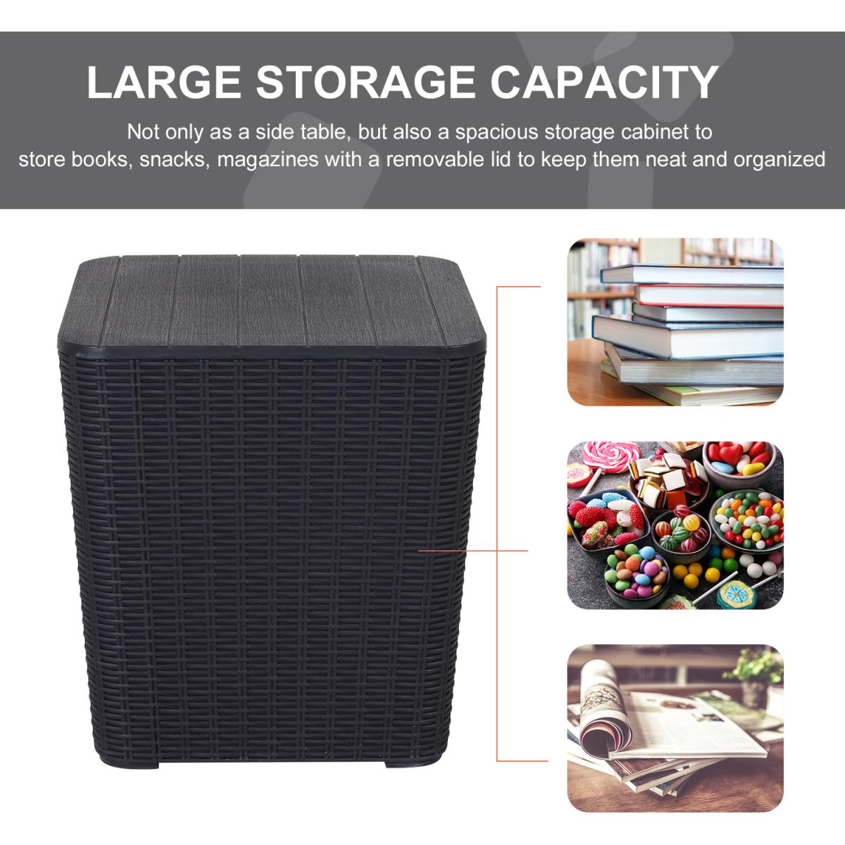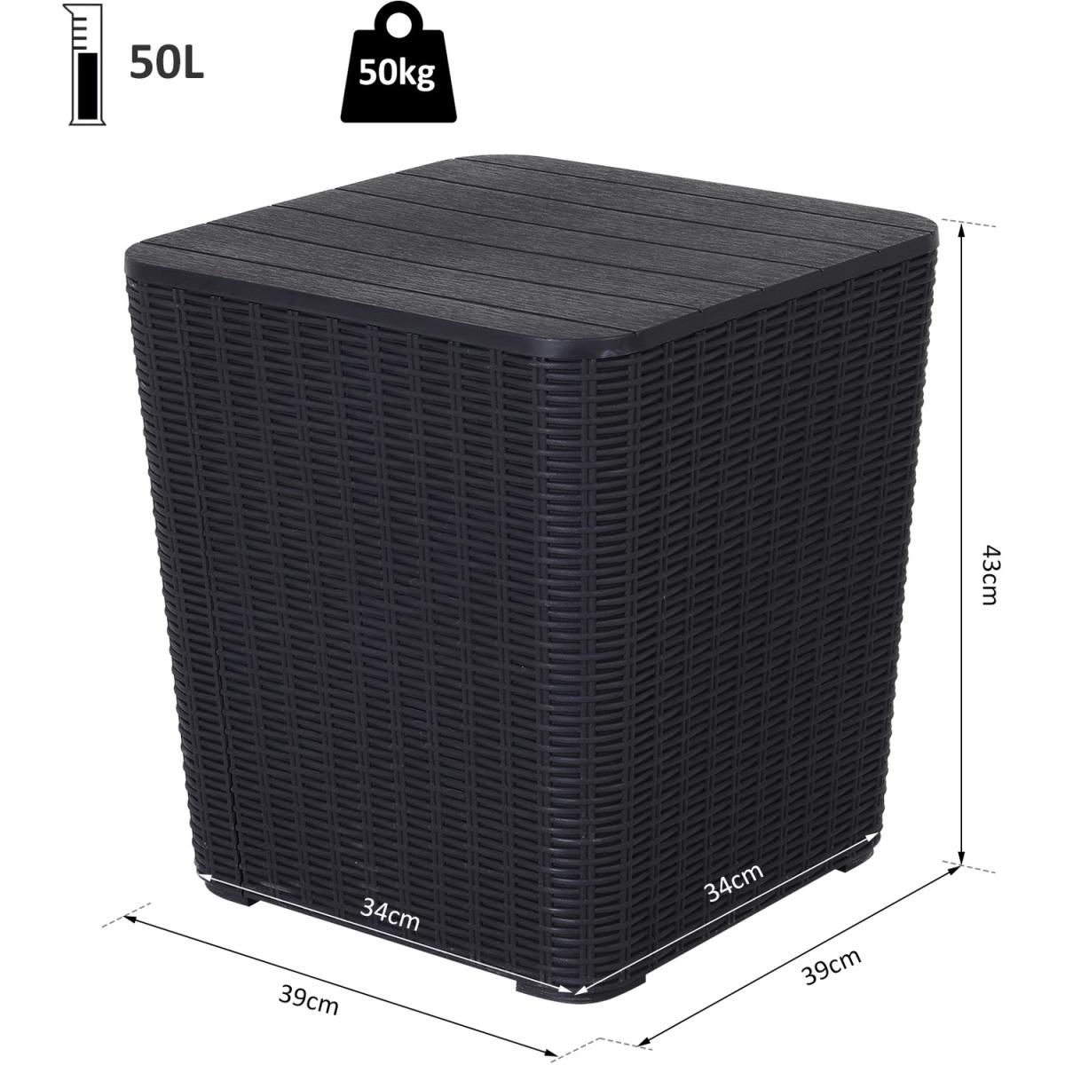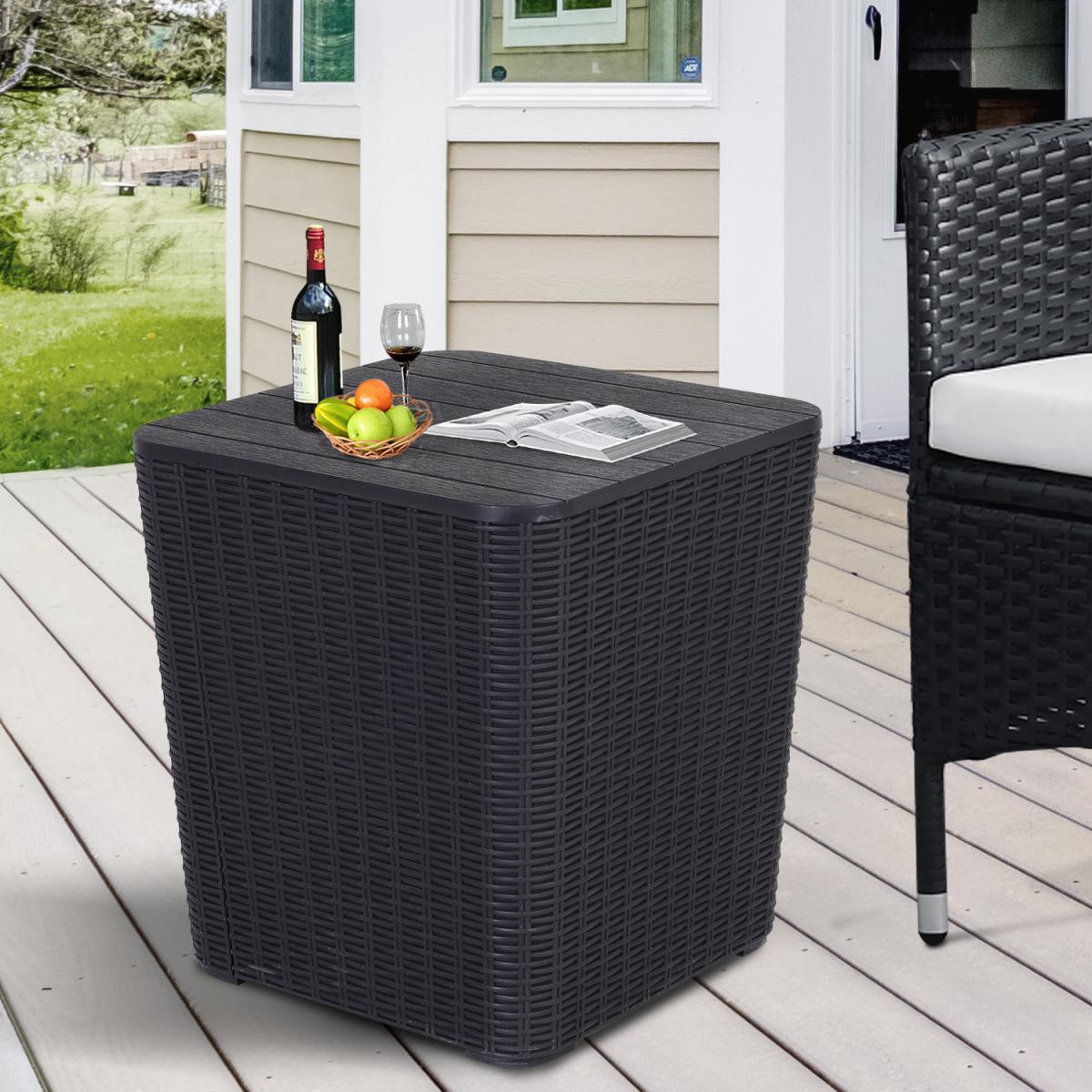 Give your drinks, food, books and everything else a place to be kept outdoors with this 2-in-1 table from Outsunny. Square in shape and made from plastic, the weather-resistant body is crafted into a rattan looking design in grey, allowing it to blend in with your other garden rattan for a matching look that will stay stylish for years to come. With a smooth and level tabletop to keep drinks steady with no spills, this table is finished with a storage cabinet inside for convenient storage. The perfect addition to your BBQ, Summer party or garden gathering.