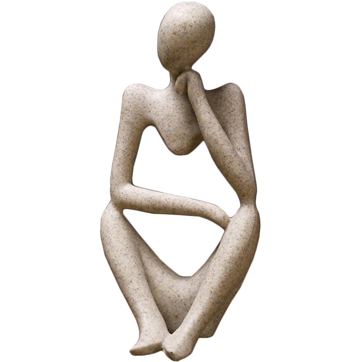 Inspired by the thinker and meditator trend, this statue features an abstract woman who is sitting and holding her head, you can't see her face, but you know she is thinking. The whole figurine shows an understated beauty and elegance. Looking at the statue can bring your mind to a calm and peaceful state, it can be an amazing addition. Introduce it to your home for an enhanced artistic atmosphere.