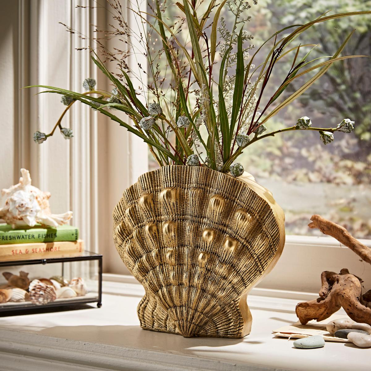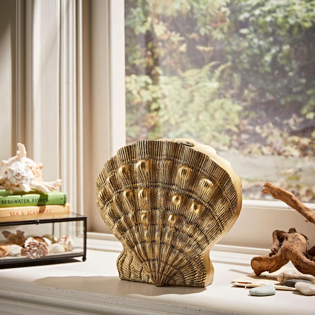 In collaboration with the Natural History Museum. Intricately detailed with its natural curves, this vase, which was inspired by the incredibly beautiful Lion’s paw scallop, is the perfect addition to your home, finished in a gorgeous gold colourway for that extra shimmer. Made from high quality and durable resin, this vase can be used for both fresh and faux flowers which spout at the top. Its contemporary finish is detailed to suit any home interior. This has been inspired by the Museum’s mollusc collection. Natural History Museum x Dunelm. Extraordinary treasures can be found along the British coastline. A truly special environment, the shoreline is simply brimming with life both above and below the waves, but with the tide washing twice daily over the shore, it can be an unforgiving place to live. The creatures that reside here must adapt to an ever-changing environment - some have evolved hard outer shells to protect themselves, others such as starfish have developed hundreds of ‘tube feet’ to grip on tightly. From out of reach coastal cliffs and rocky islets teeming with seabirds to the rich and diverse underwater kelp forests that support a variety of marine species, there is incredible wildlife wherever you turn. Through our collection with the Natural History Museum, we want to celebrate the diversity of the UK’s incredible shorelines and highlight some of the threats impacting them and the species that reside there from rising ocean temperatures to acidity levels. © The Trustees of the Natural History Museum, London 2023. All Rights Reserved.