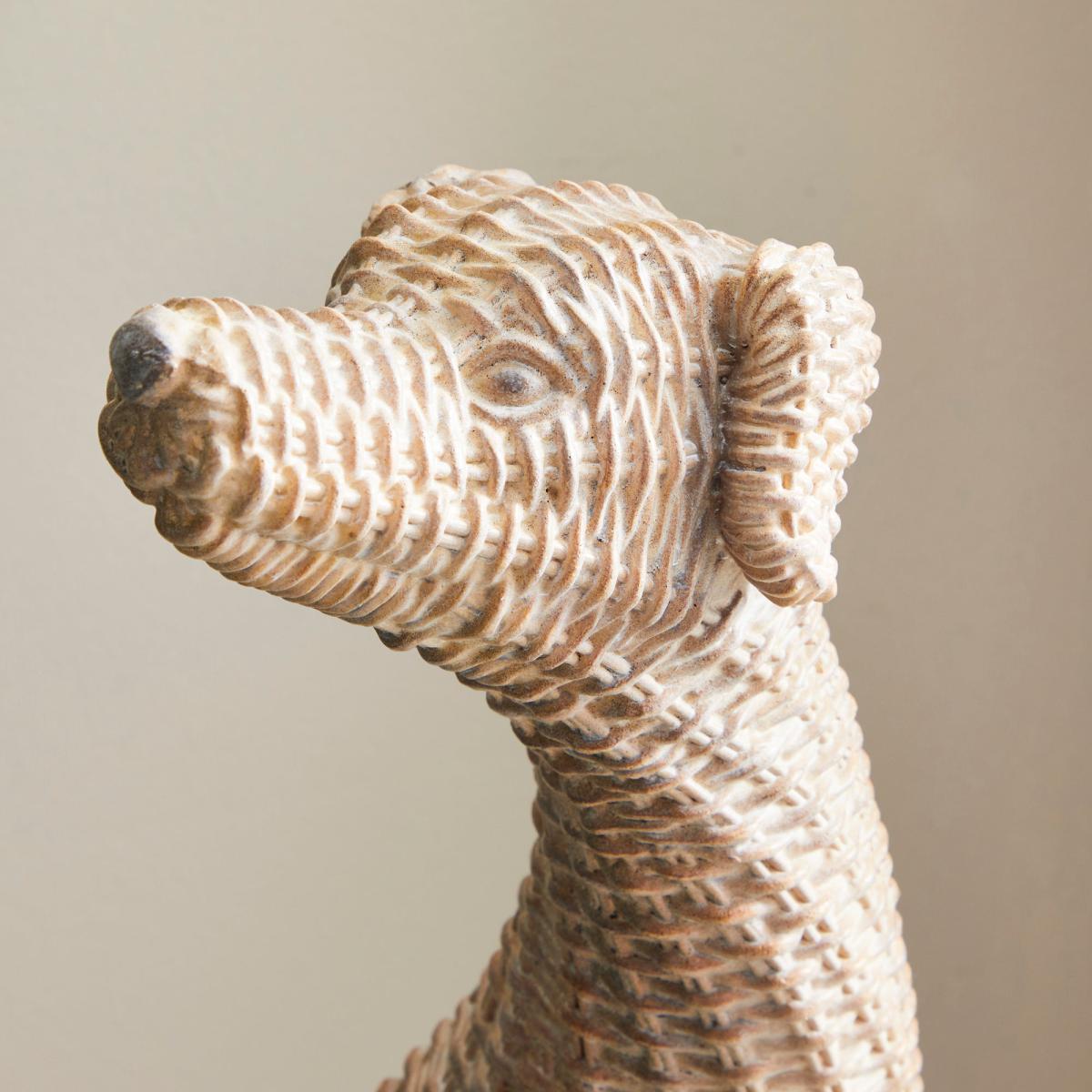 I love this greyhound sculpture for its understated elegance and tactile appeal. Its resin wicker finish gives it a natural, textured look that works beautifully in both contemporary and rustic interiors. It’s great as a standalone statement piece or paired with other natural materials like wood and linen for a layered, relaxed feel. Practical styling tips include placing it on a sideboard or console table to add height and visual interest, or positioning it near an entryway as a conversational accent. Keep the surrounding decor simple to let the sculpture stand out, and consider pairing it with other subtle art pieces or greenery to enhance its charm without overwhelming the space.