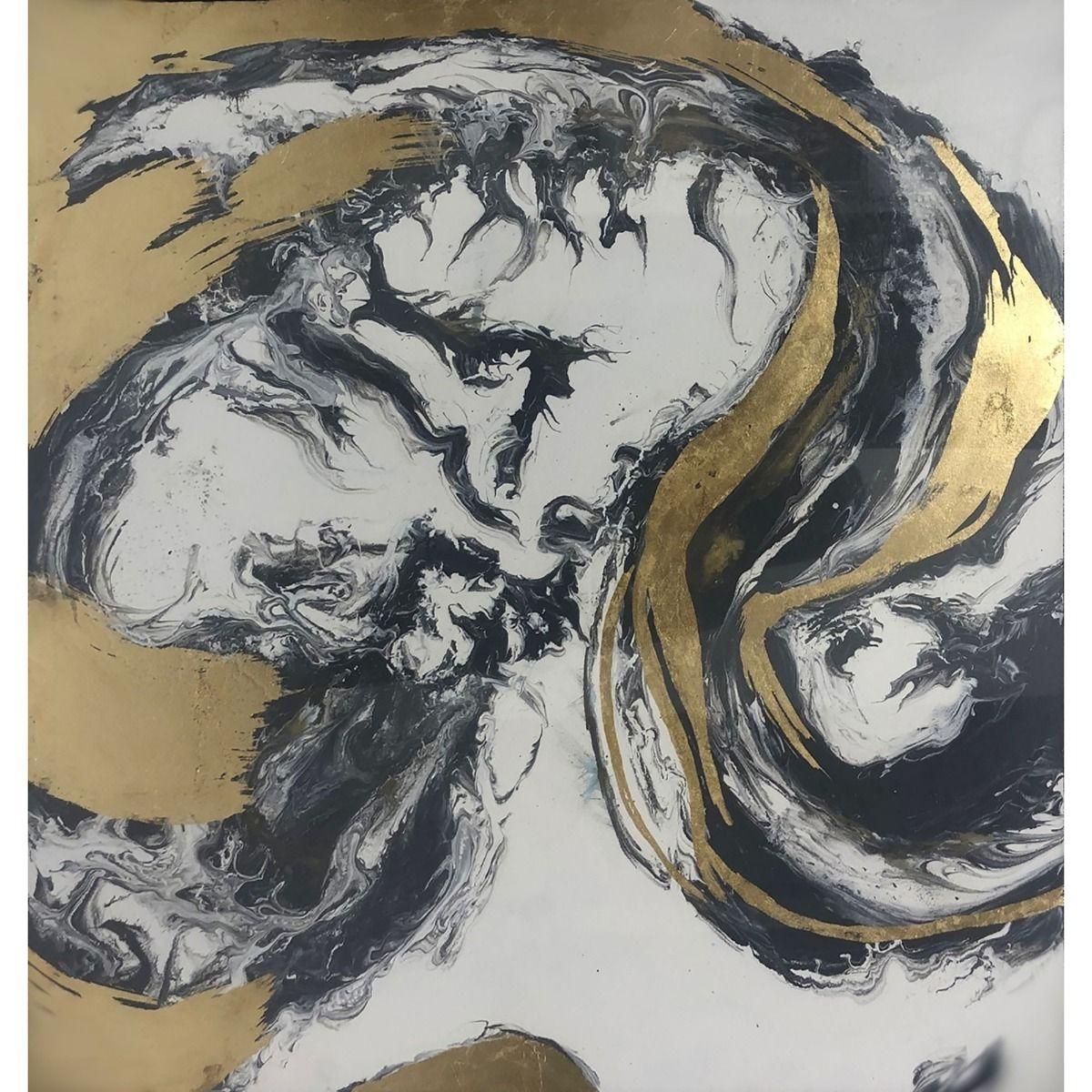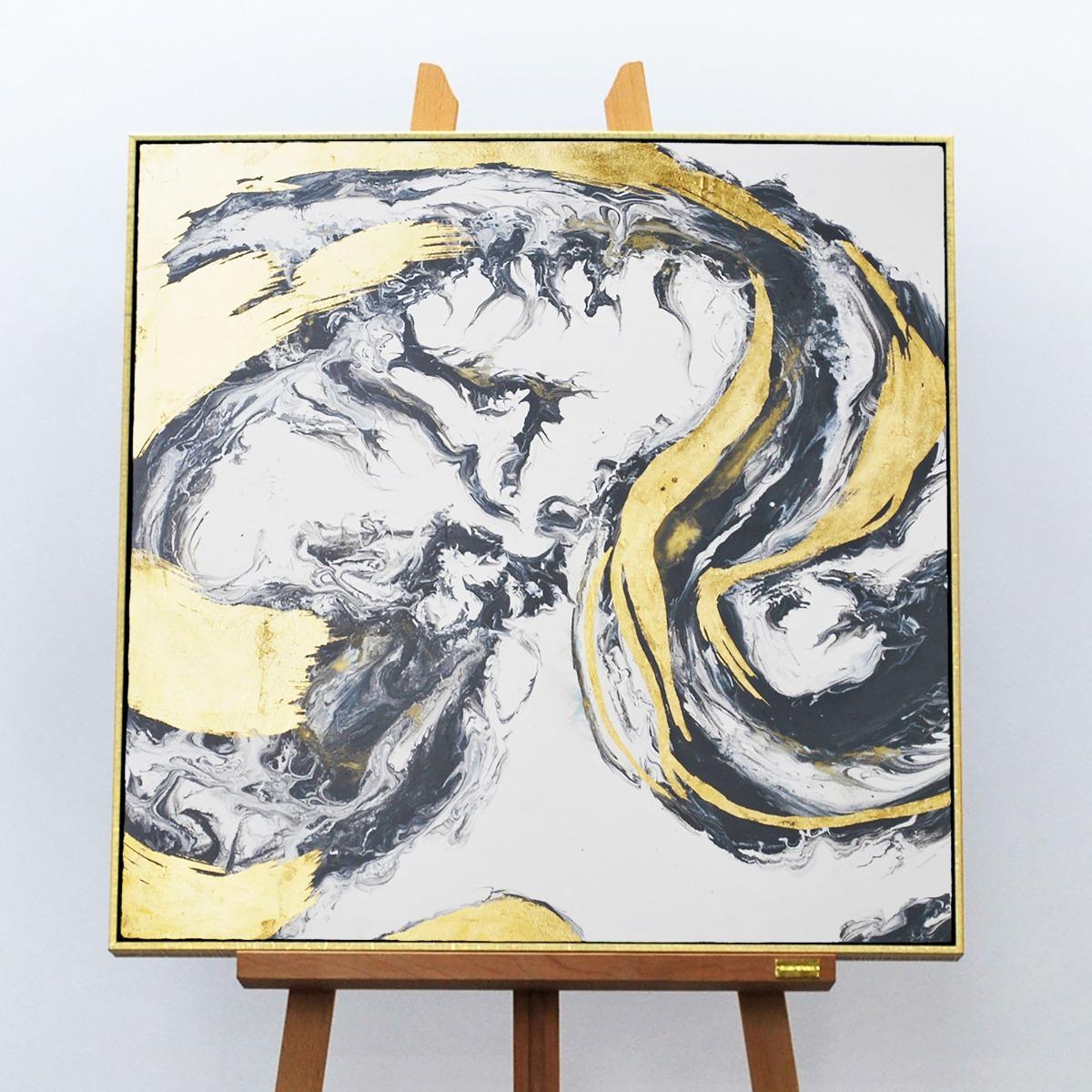 Resist Metalic Gold and Silver Canvas with Gold Frame 80x80cm