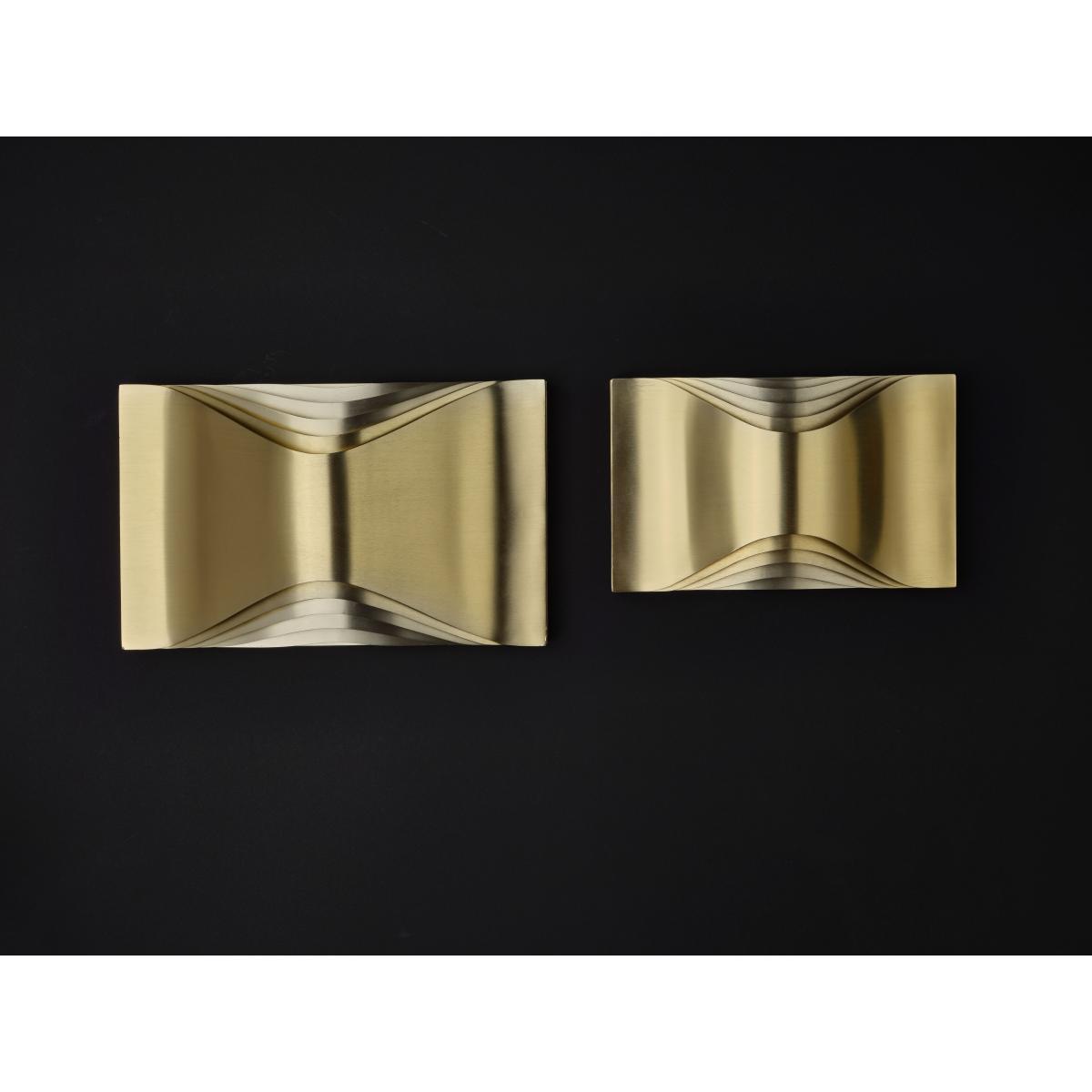 The smaller wall light offers a sleek, contemporary touch that works well in minimalist or modern interiors, especially when you want to add ambient lighting without overwhelming the space. Its polished gold and metal finish brings a luxurious feel, making it ideal for living rooms, bedrooms, or hallways where subtle, focused light is needed. Practical styling tips include placing it near art displays, mirrors, or alongside other wall-mounted pieces to create visual interest. Its compact size makes it versatile for smaller walls or as part of a layered lighting scheme, providing both style and functionality with a refined, understated look.