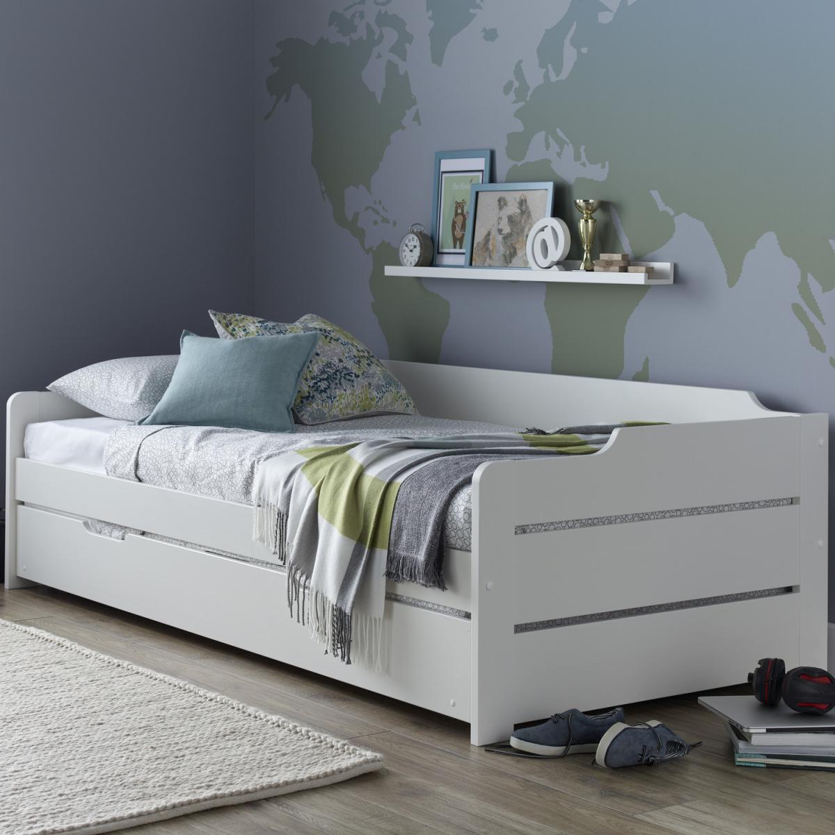 Serene in its simplicity, accessibility and functionality, the Rest Relax Cosmic White Wooden Day Bed with Guest Bed offers any home an excellent day bed with the capability of splitting into a separate guest bed, thanks to the built-in trundle. Designed as a means of merely enriching lounges, studies and guest rooms, the Rest Relax Cosmic White Wooden Day Bed with Guest Bed is sure to seamlessly blend in with essentially any style of decor. It acts as an inviting piece of furniture, yet one that's easily able to invite more than sleeper, making it the perfect addition to guest rooms. Easy to access, the trundle section of the Rest Relax Cosmic White Wooden Day Bed with Guest Bed is simple to slide in and out of the general frame. Thanks to the brilliantly simplistic design of the bed, this section doesn't draw the eye until it is revealed, which means the Rest Relax Cosmic White Wooden Day Bed with Guest Bed truly can blend into any environment. Crafted from strong and sturdy materials, the Rest Relax Cosmic White Wooden Day Bed with Guest Bed is sure to be safe, withstand the test of time. Though it requires self-assembly, the Rest Relax Cosmic White Wooden Day Bed with Guest Bed comes paired with easy to follow instructions, meaning it will be ready to place in the home relatively quickly.