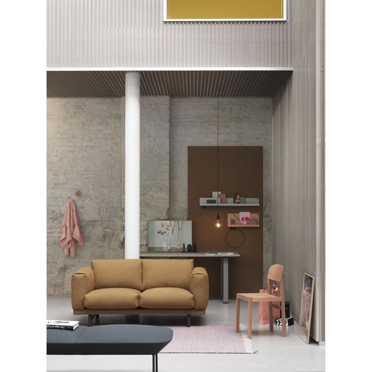 The Rest Studio sofa by Muuto radiates a relaxing aura. It is a Scandinavian-inspired elegant and sober piece of designer furniture. The ultra-soft sofa is decorated with plump, thick cushions that are both soft and enveloping. They are stuffed with a mixture of feathers and foam, designed to hug every curve of your body and guarantee lasting, unparalleled seat comfort. Thanks to its unique padding, the Rest Studio sofa keeps its shape over the long term and does not sag over time. Rest Studio is like a cocoon, with soft and welcoming forms. The sofa’s simple, clean-cut lines spotlight the high quality of its covering, which is crafted from a superb Kvadrat fabric. The legs are made of black stained oak.