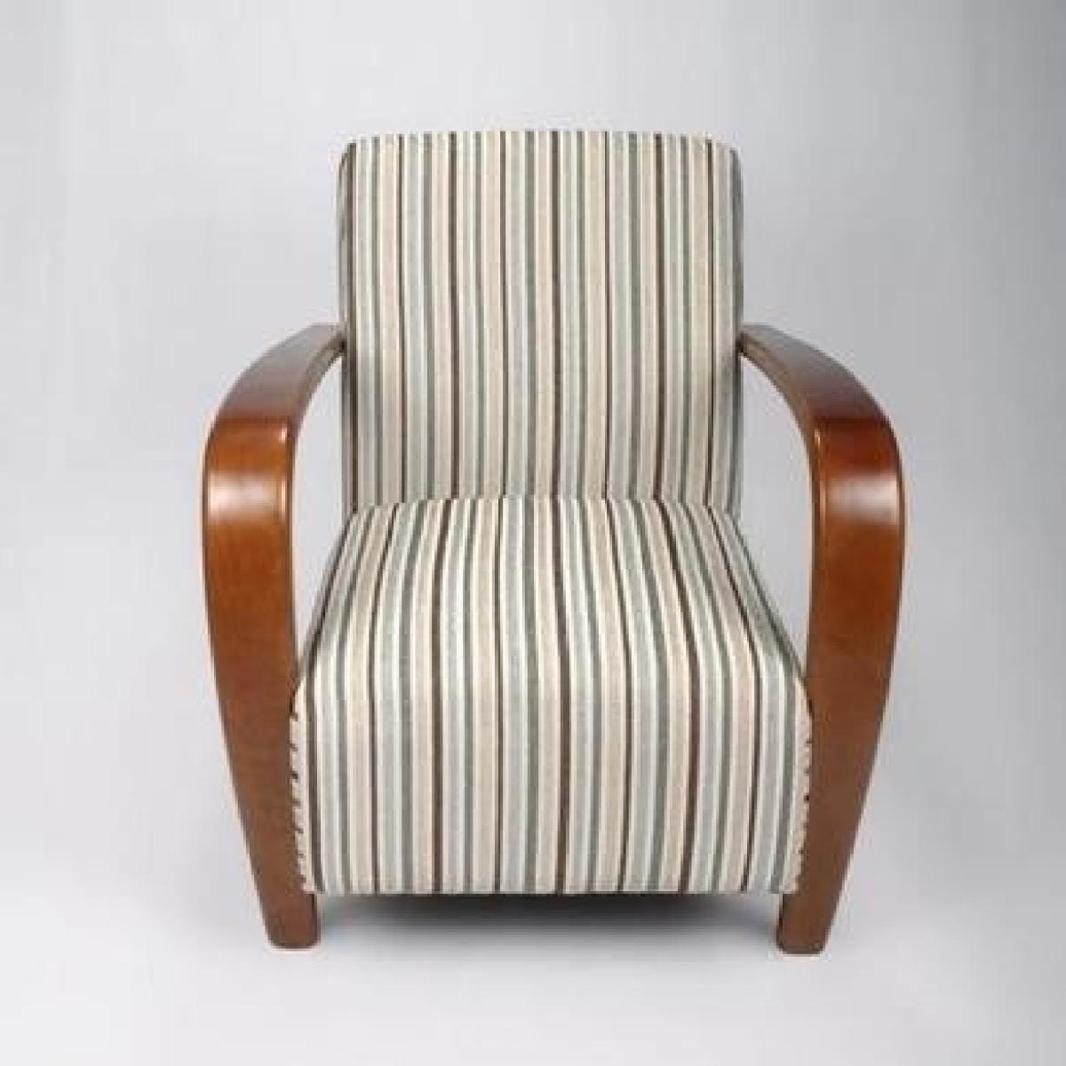 Restmore Stripe Armchair in Light Blue with Wooden Arms - Shankar