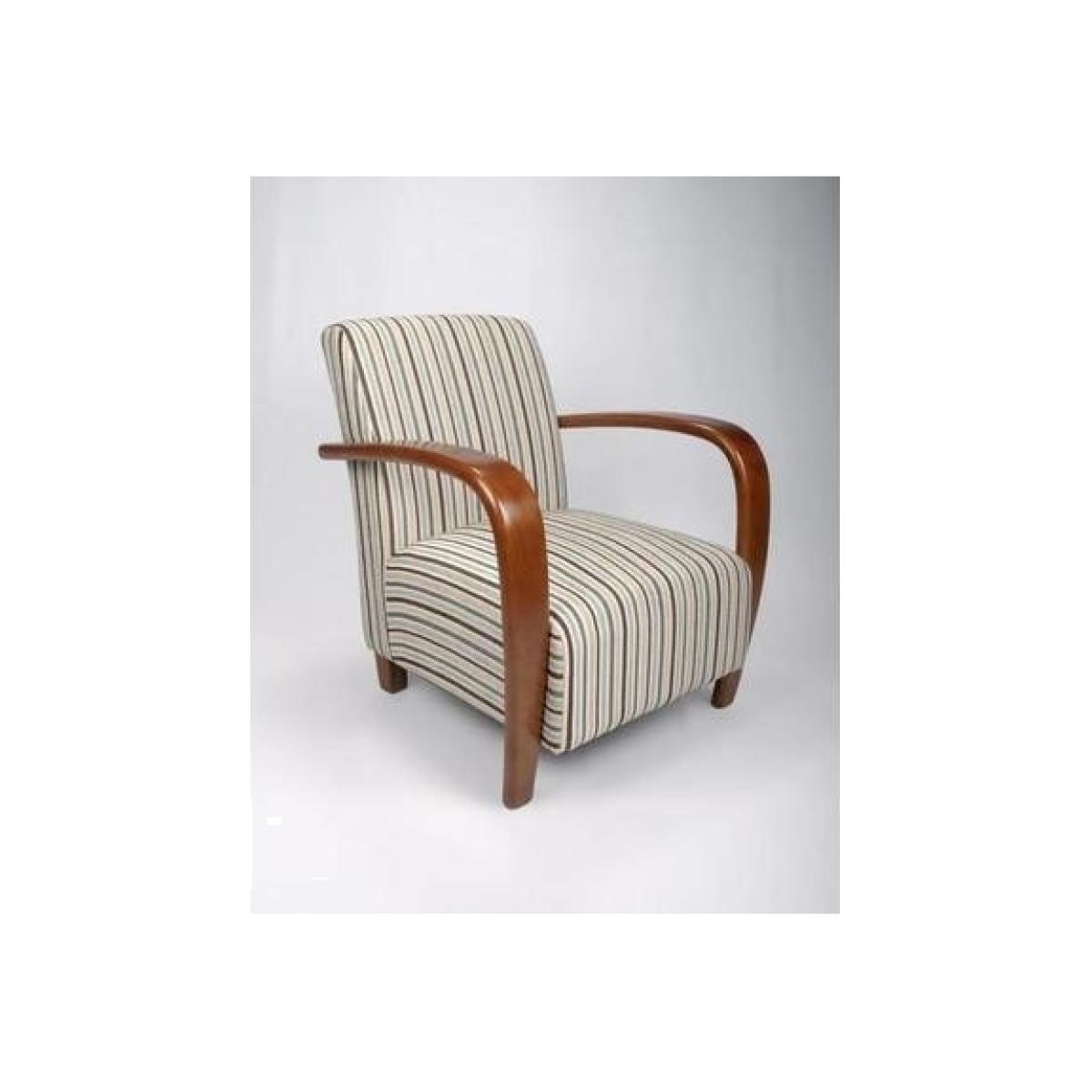 Product Description A stylish arm chair or accent chair with sumptuous upholstery in a fashionable regency stripe fabric. The Restmore armchair combines style with comfort making an elegant addition to any room. Dimensions W70cm x D78cm x H80cm Features. Blue stripe fabric Stylish design. Single chair. Fully Assembled..