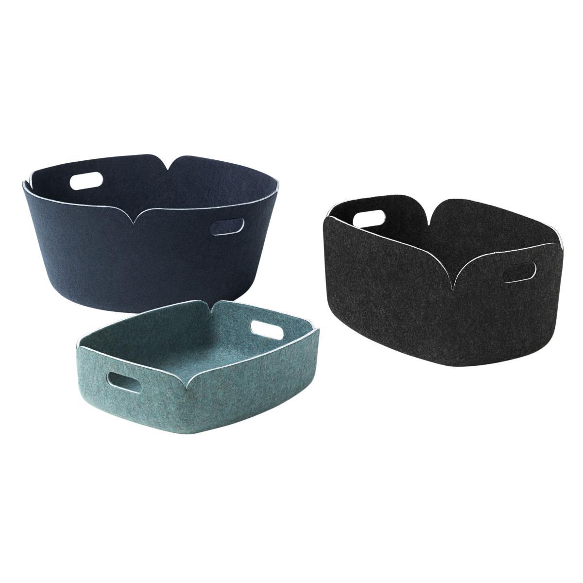 MIKA TOLVANEN ON THE DESIGN: «I wanted the basket to have an non-obtrusive nature. It's a great little basket for storing magazines or any other bits and pieces. Polymer felt combined with a soft form give the basket a friendly appearance. The name Restore is inspired by the fact that the baskets are made of recycled PET bottles. ».