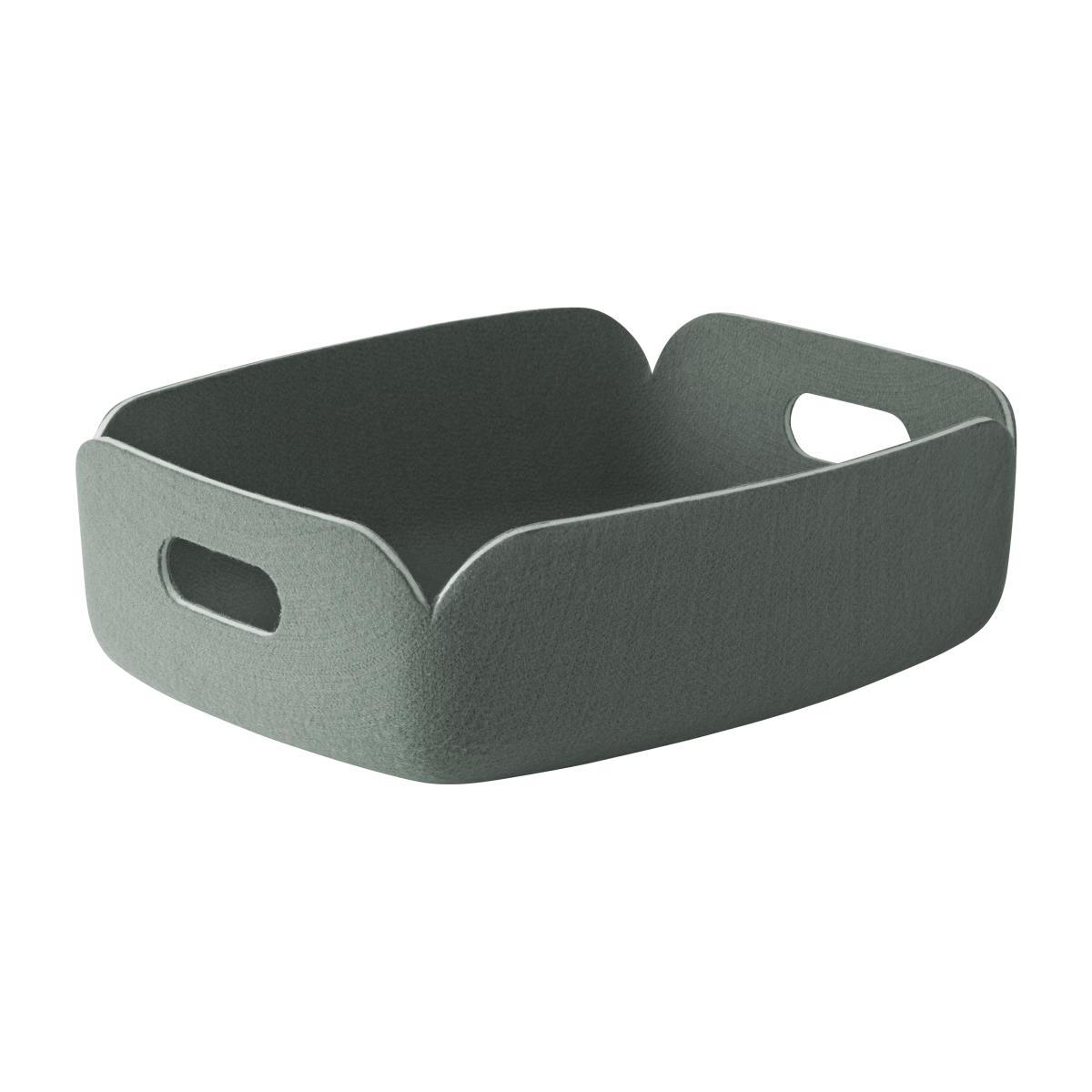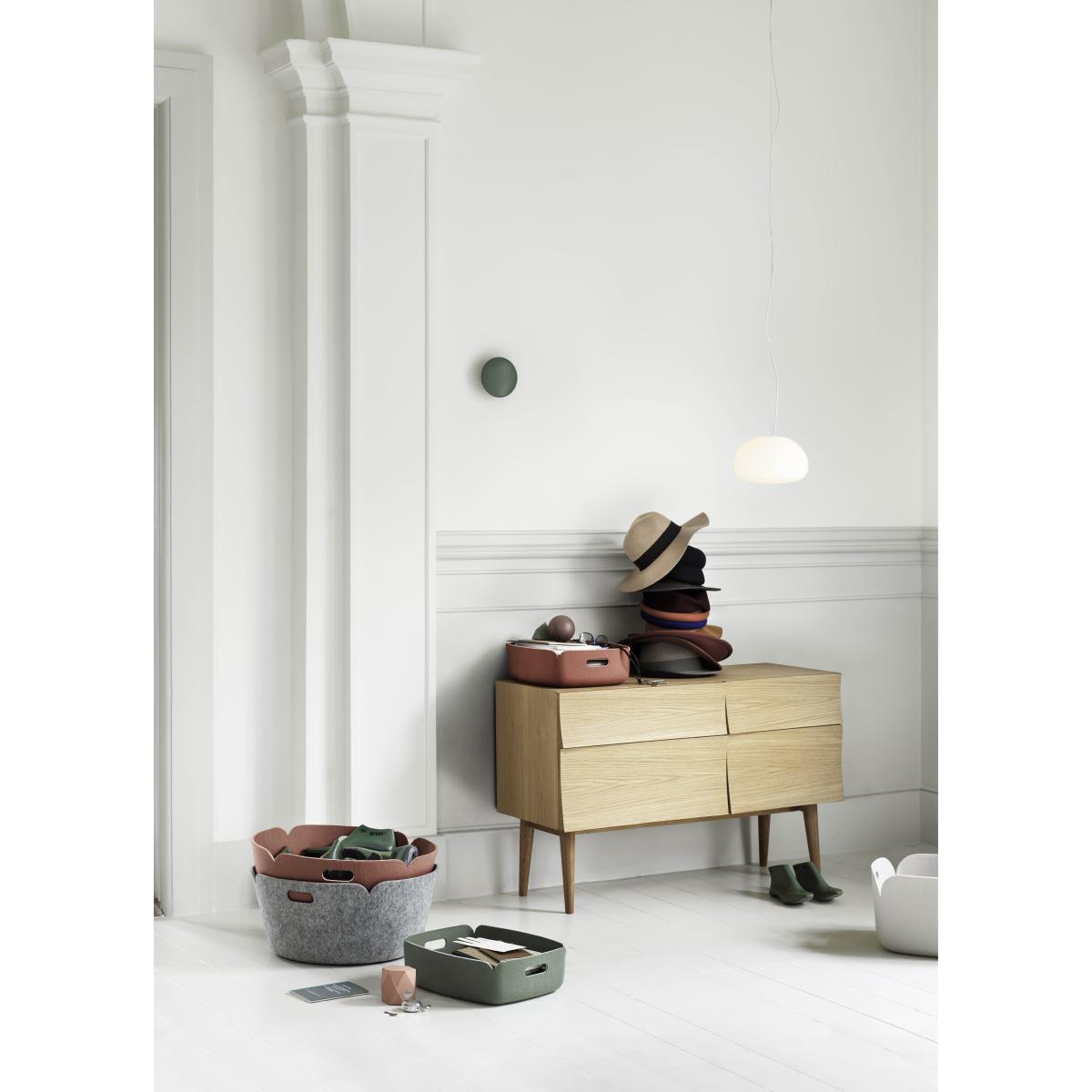 The iconic RESTORE basket has been expanded further into two exciting and functional new size options: the RESTORE TRAY and the RESTORE ROUND basket. Both of the new sizes are made of the same long lasting and durable polymer felt composite as the original RESTORE and are versatile enough to be used in a variety of different ways. The RESTORE TRAY can be used for all sorts of papers, objects and enables this cool Muuto classic to be added to your desk space and shelving. The small size fits perfectly in many different places!.