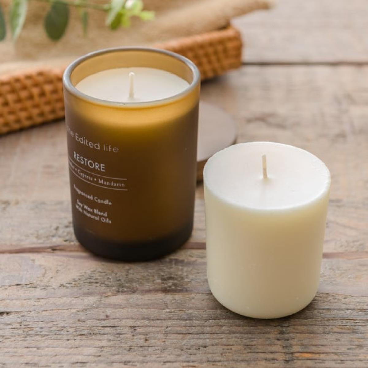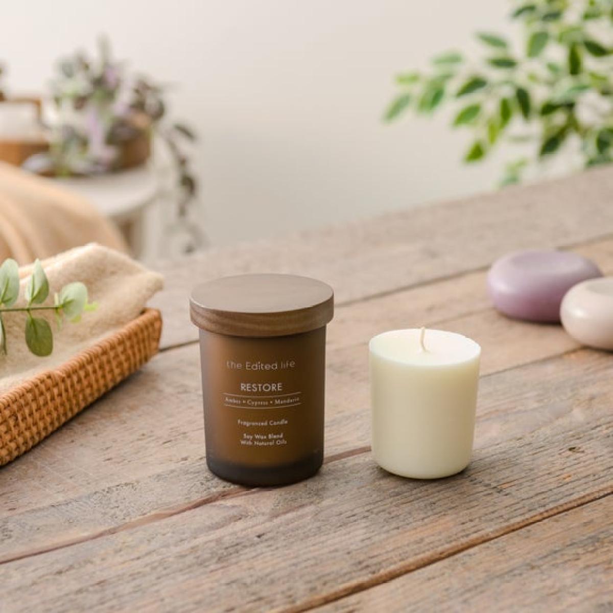 The Edited Life - Restore Candle & Refill Gift Set * Jar candle and refill set * Restore fragrance * Perfect gift Treat yourself or someone special to the calming atmosphere of the Restore Candle & Refill Gift Set. Presented in a beautifully designed box, this thoughtful set includes a candle and refill in our soothing Restore fragrance - a refreshing blend of amber, cypress, and mandarin. Perfect for creating a relaxing atmosphere and recharging your senses, it’s a gift that keeps on giving. Live well. Mean well. Be well. Many of us want to live simpler, more responsible lives. As we become more aware of our surroundings and understand how our choices contribute to the world around us, more people are choosing to consume less and curate more. The Edited Life introduces a new era of thoughtfulness in the home, with an understated collection of pieces chosen for their simple beauty, quality craftsmanship and innate usefulness that will last beyond any trend. Having it all is no longer the goal; having enough, and it being just right, is.