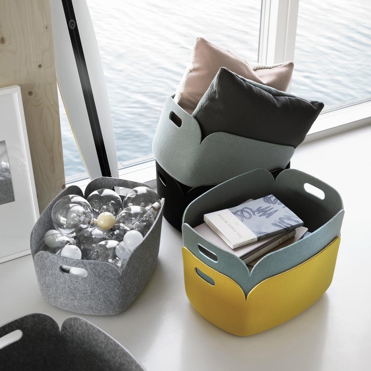 The Restore storage basket from Danish Muuto is designed by Mika Tolvanen and can be used for storing newspapers, toys, blankets or other personal belongings. It is made out of recycled PET bottles and its felted texture gives it a special expression. Combine with other furniture and accessories from Muuto for a Scandinavian look!.