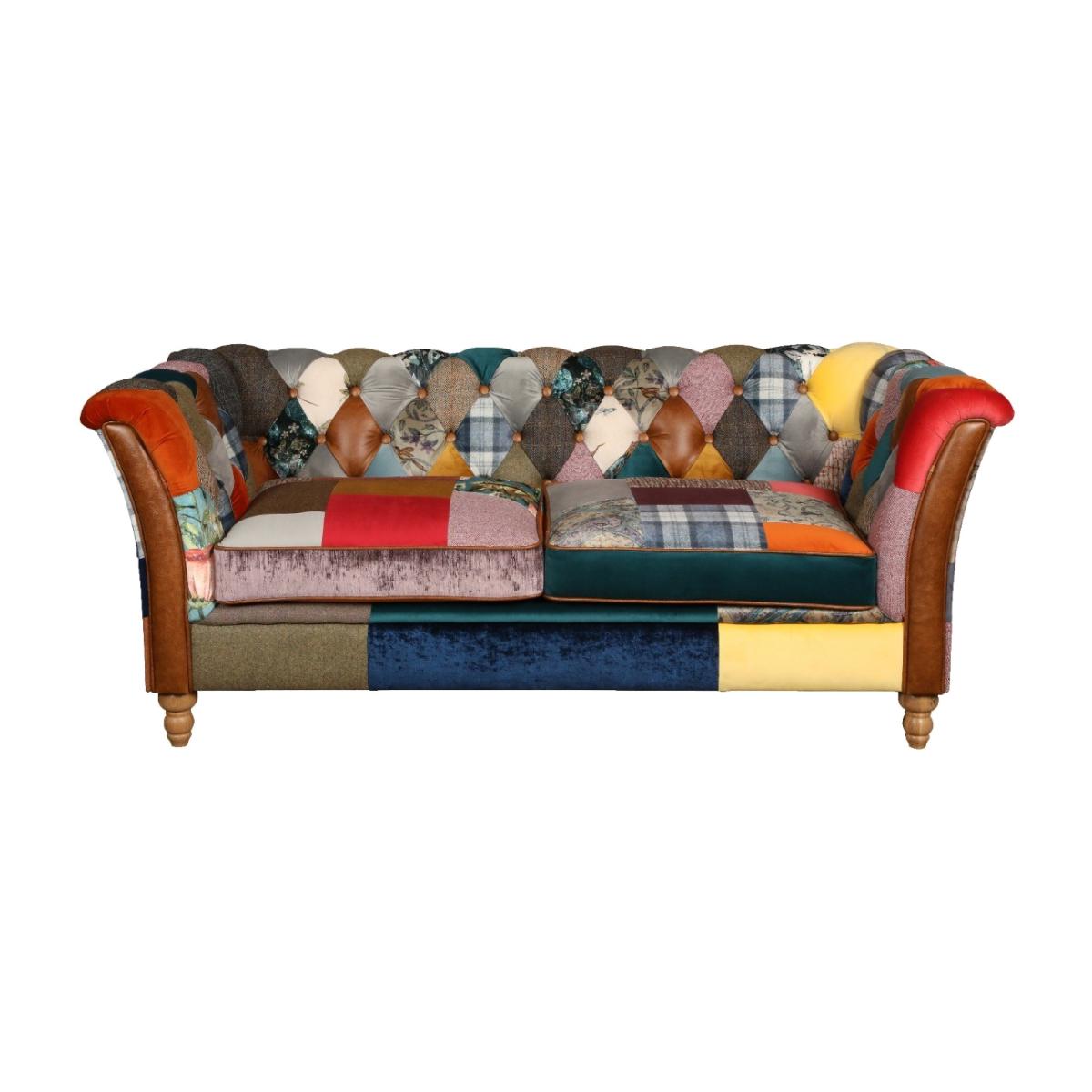 Feast your eyes on the spectacular Retland sofa. Indulge your senses! Expertly- sewn luxurious fabrics give a stunning scalloped top edge to the back and are a dream to touch. This sofa makes a long-lasting impression on all of your guests. Expertly upholstered in fabric, leather, velvet, wool Traditional patchwork design in bright colours. Classic button back with leather buttons. Stylishly angled arms. Exquisitely sculptured legs