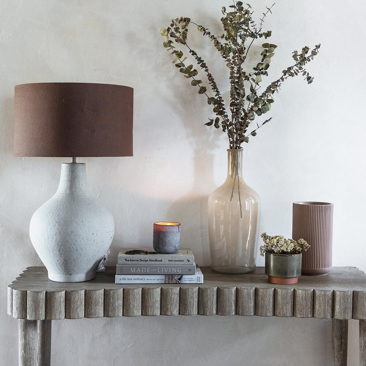 I love this lamp for its sculptural form and its versatility-its simple, understated design makes it a great addition to both modern and more traditional interiors. The concrete base adds an industrial touch, while the neutral tones ensure it complements a broad colour palette. It works particularly well on bedside tables, console units, or shelving where it can serve as both a functional light and decorative piece. For styling, consider pairing it with textured fabrics or matte accessories to enhance its raw, contemporary feel. Keep the surrounding decor minimal to let the lamp’s shape and material shine, and opt for warm bulbs to add a cosy glow in the evening.