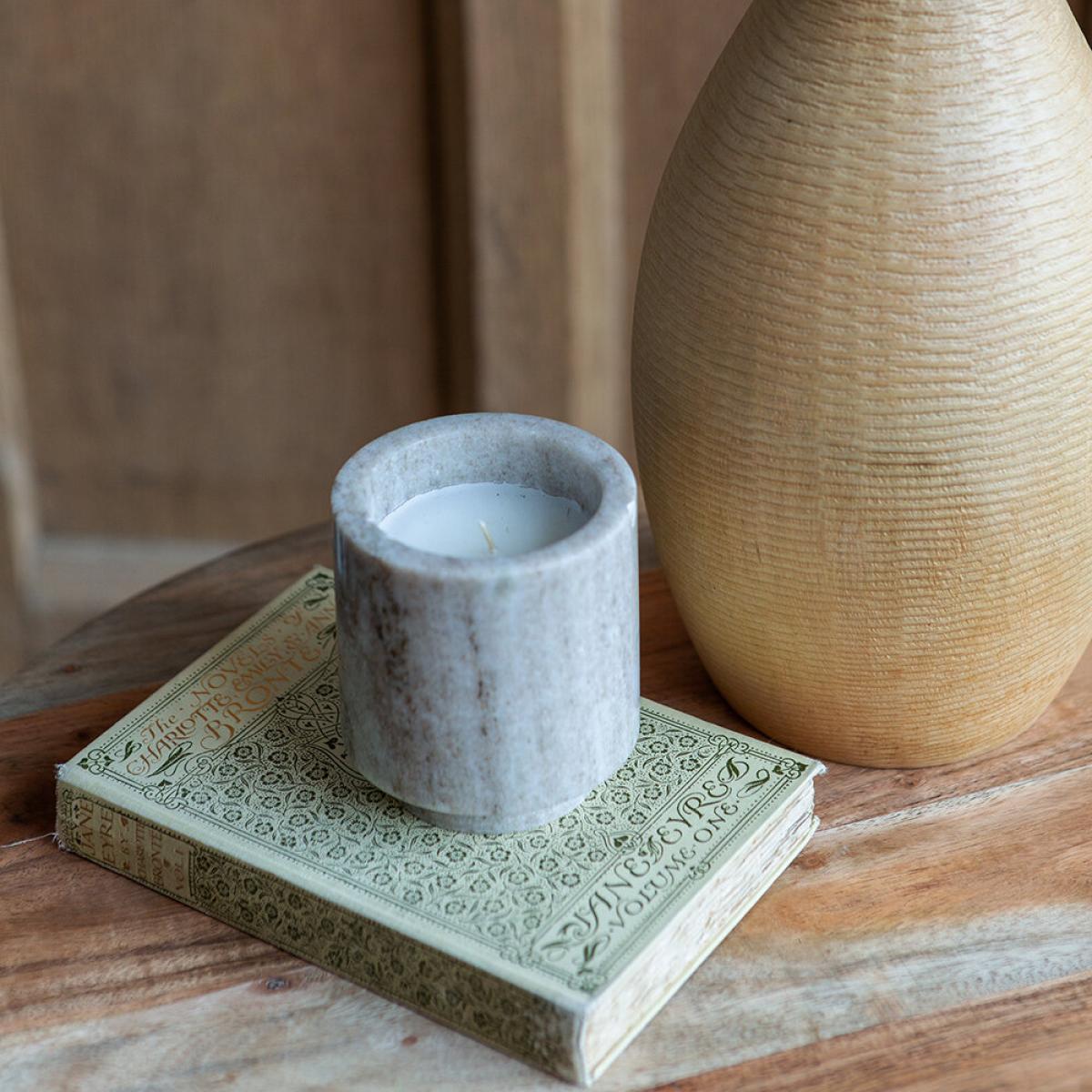 I love this marble candle for its understated elegance and durable design. Its footed shape and natural marble finish make it versatile, fitting well in both modern and traditional interiors. It works particularly well styled on a minimalist dressing table, a rustic coffee table, or in a spa-inspired bathroom setup. Practical tips include pairing it with metallic accents like brass or matte black for contrast, or placing it alongside textured textiles to amplify its natural feel. Because of its neutral tones, it’s easy to incorporate into a variety of colour schemes without overpowering the space. This candle not only adds ambient light but also introduces a tactile, luxurious element that complements both understated and more eclectic decor styles.