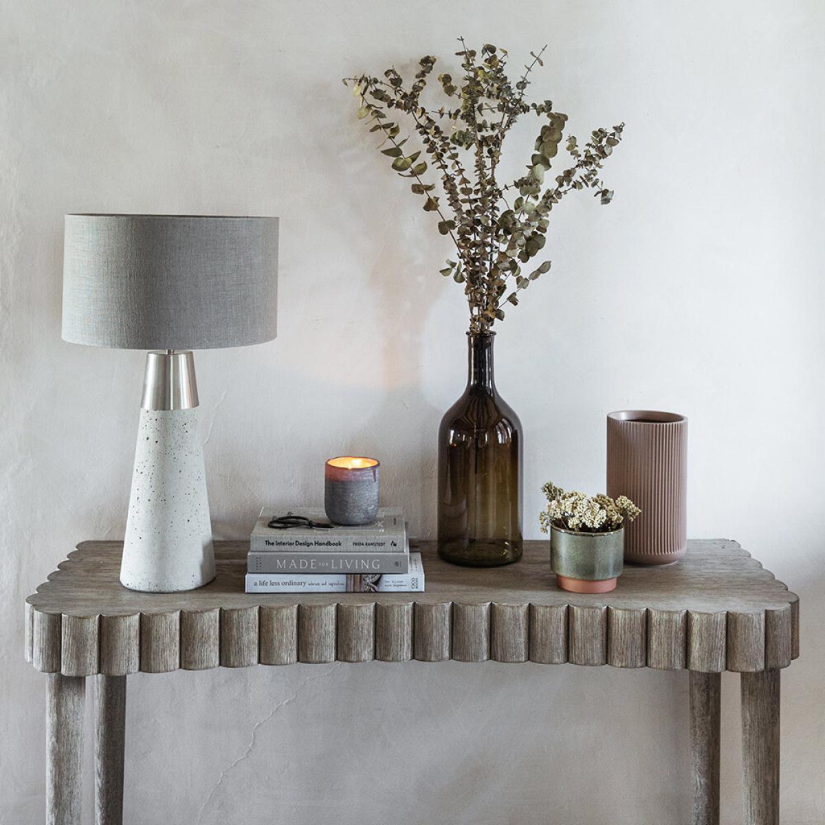 Light it up with this grey cone lamp from Retreat. Simple yet stylish, it features a natural concrete body that's perfectly complemented by the grey linen shade. A welcome addition to your home, pair it with more accessories from Retreat to complete the look. Key features: * Material: concrete, brass, linen * Dimensions: H64xD35cm * Energy rating: A++ TO E * GLS bulb * CE certified * 220-240V~50Hz & MAX 60W * Natural concrete body * Grey linen shade * More lighting available from Retreat