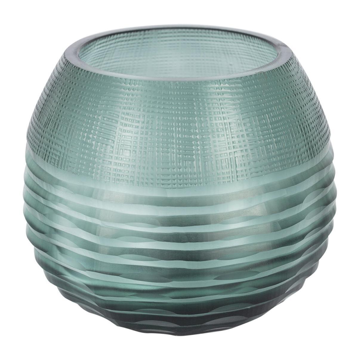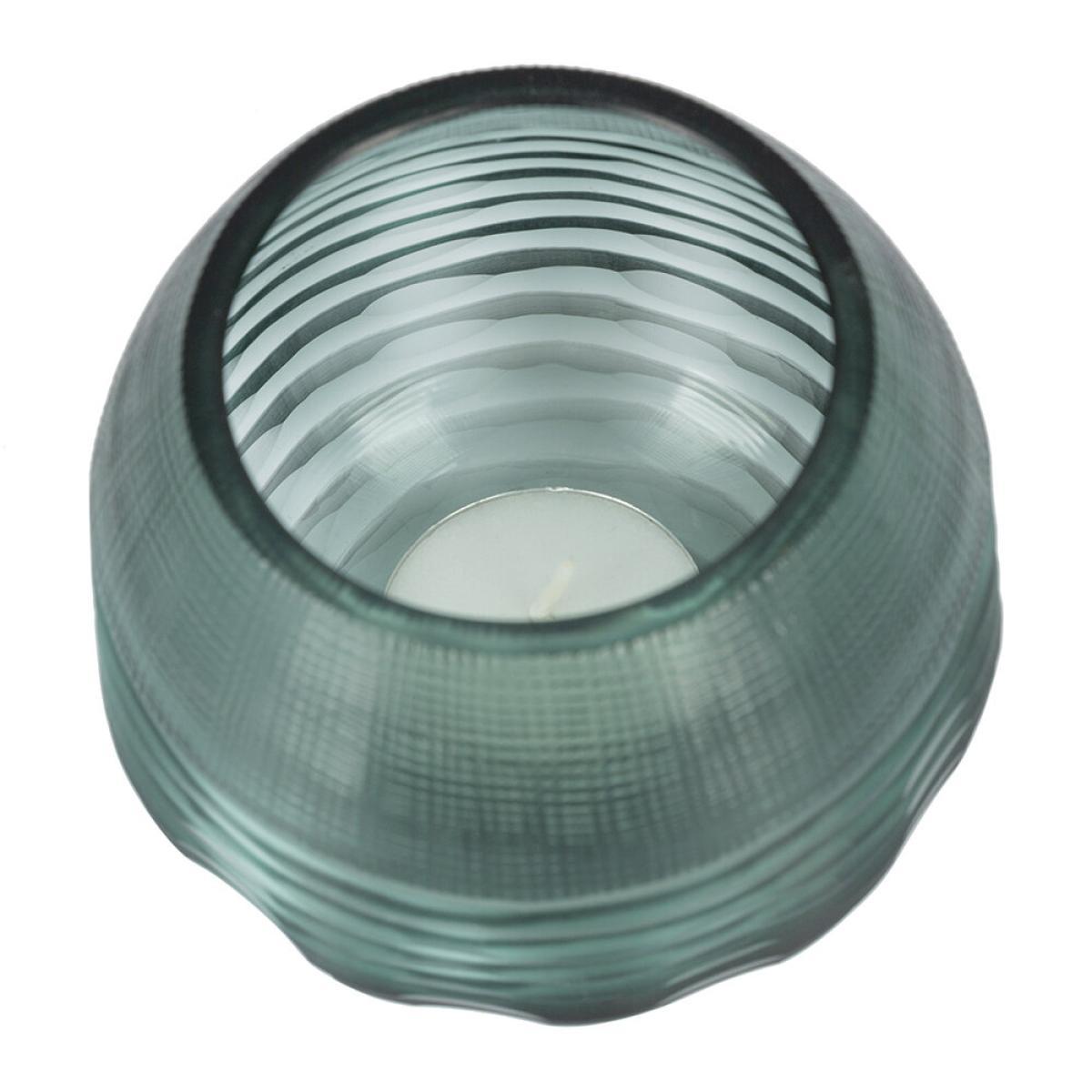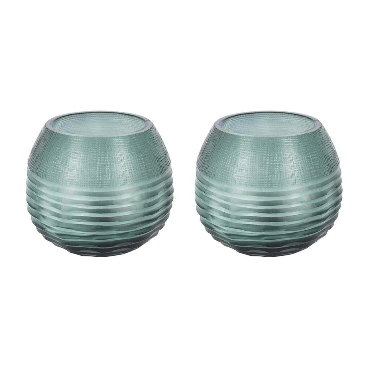 Retreat - Striped and Ribbed Glass Tealight Holder - Set of 2 - Green