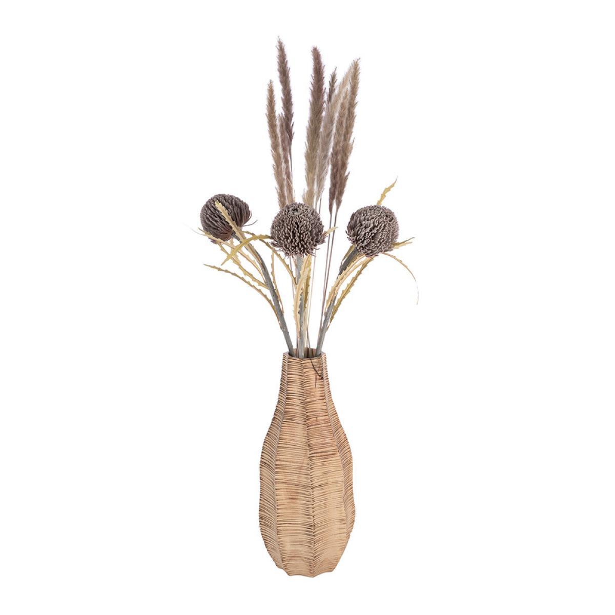 I really love this tall wicker effect vase for its natural, tactile finish that adds warmth and texture to a space. It works particularly well in relaxed, coastal, or bohemian interiors, but can also serve as a striking piece in minimalist settings thanks to its organic silhouette. When styling, consider pairing it with dried grasses or simple, monochrome blooms for a layered look, or let it stand alone as a sculptural statement. Its height makes it ideal for placing on the floor beside sofas or in a corner, creating visual interest without overwhelming the room. Practical tip: keep the contents light and airy to highlight its form and avoid overcrowding, which could diminish its elegant simplicity.