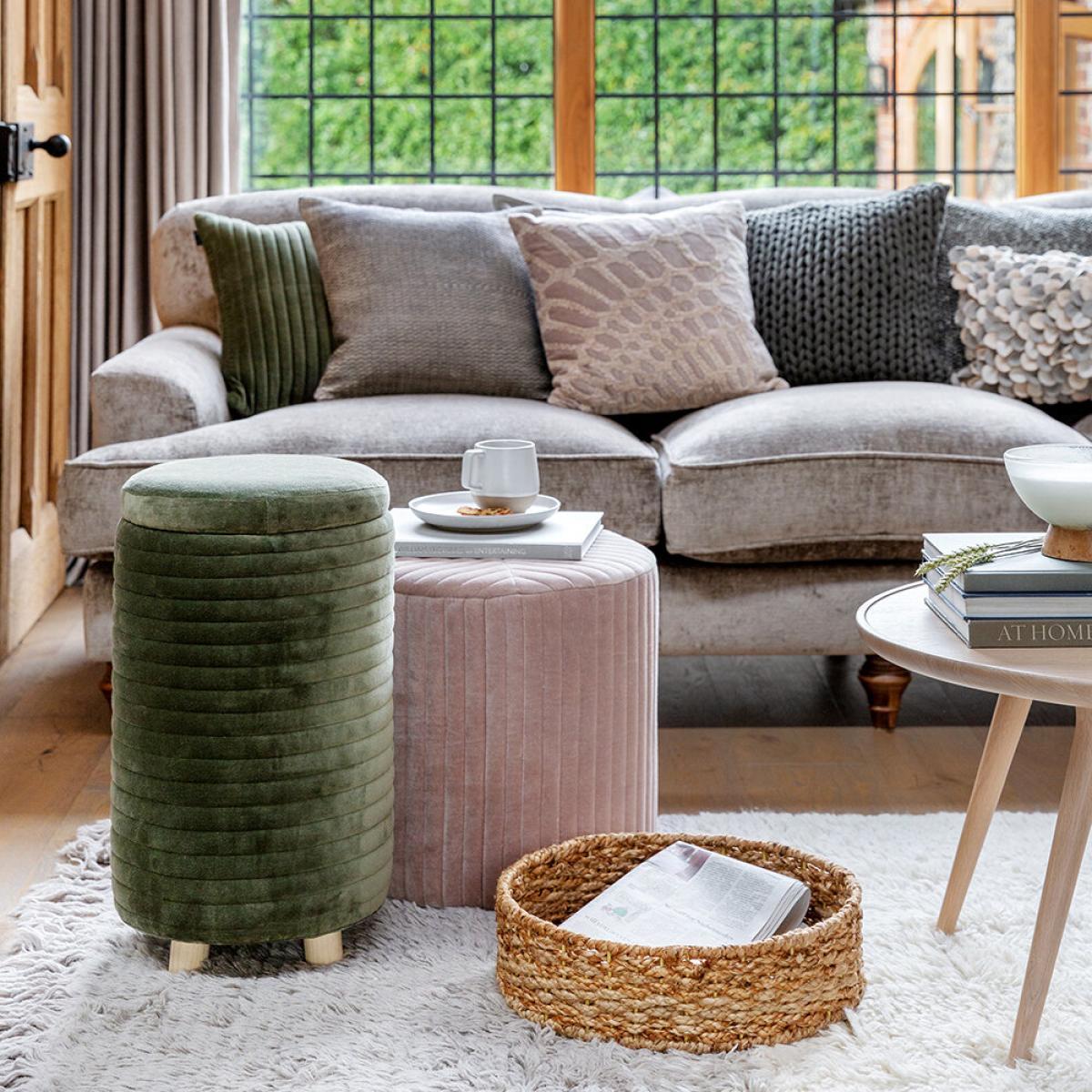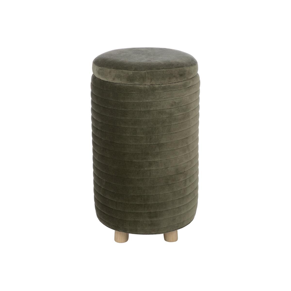 Add the perfect finishing touch to your interior with this pouf from Retreat. Boasting a quilted design and soft velvet finish, it features hidden internal storage, perfect for keeping your home organised in style. Key features: * Material: cotton velvet, wood * Dimensions: Ø30xH50cm * Khaki colour * Quilted design * Hidden storage inside * Soft velvet finish