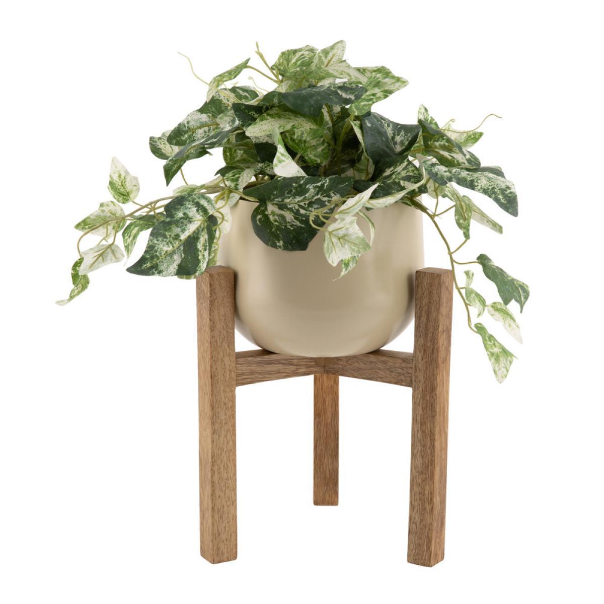 I love this wooden-based planter for its understated yet natural appeal, making it a versatile choice for various interior styles. Its neutral colour and simple form work well in both modern and rustic settings, adding warmth and texture without overwhelming the space. I’d recommend pairing it with leafy greenery or succulents for a fresh touch, placing it on a console or side table to create a centre of interest. Practical styling tips include mixing different sizes of planters for visual contrast or combining with other natural materials like wicker or linen to enhance a cohesive, tactile look. It’s perfect for bringing a touch of nature indoors while maintaining a stylish and contemporary feel.